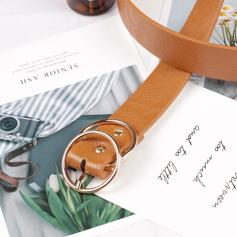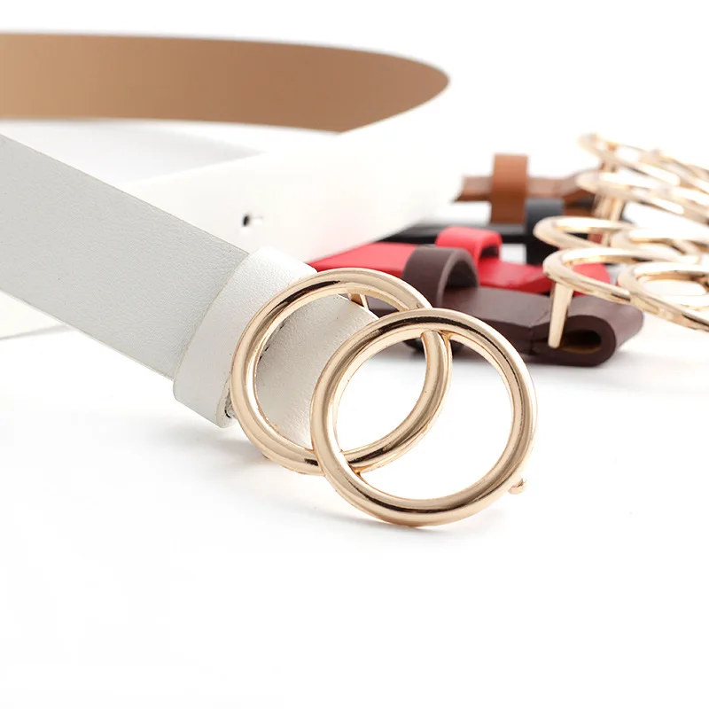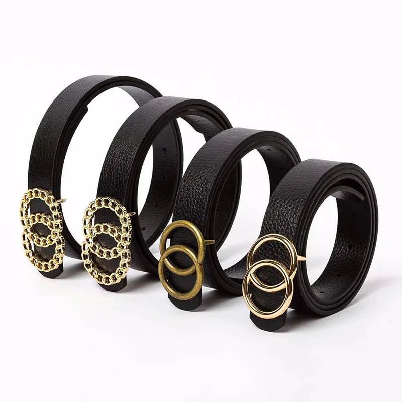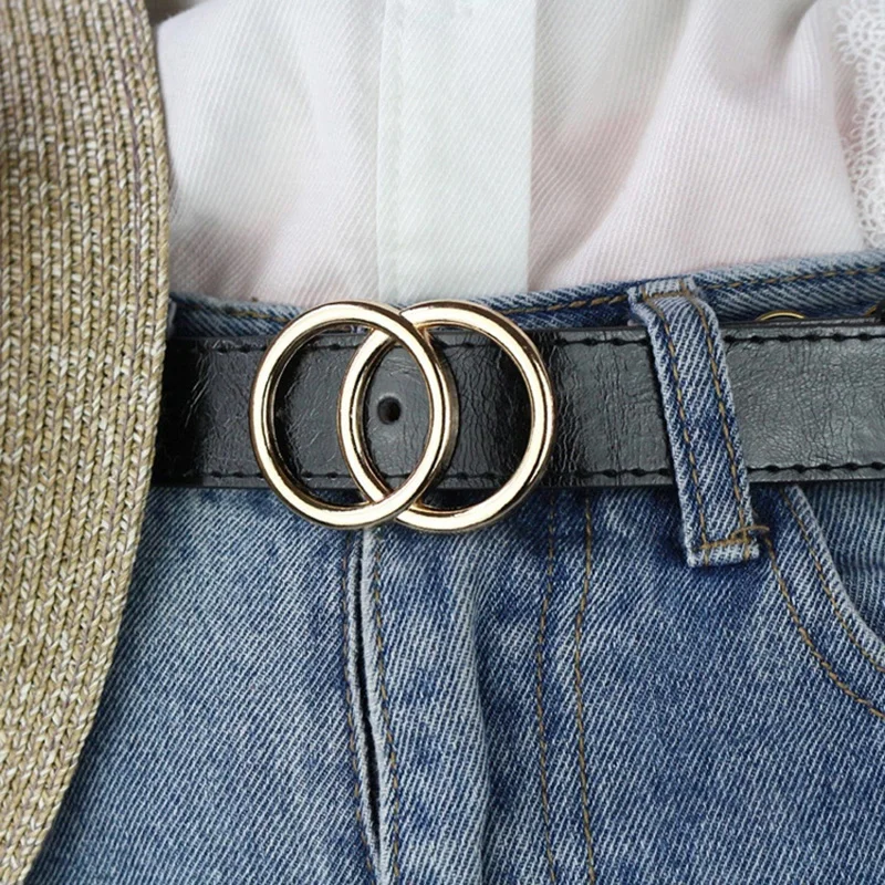 Женский Универсальный кожаный ремень 35 видов, черный, бронзовый, серебристый, с двойной круглой пряжкой, пояс для джинсов