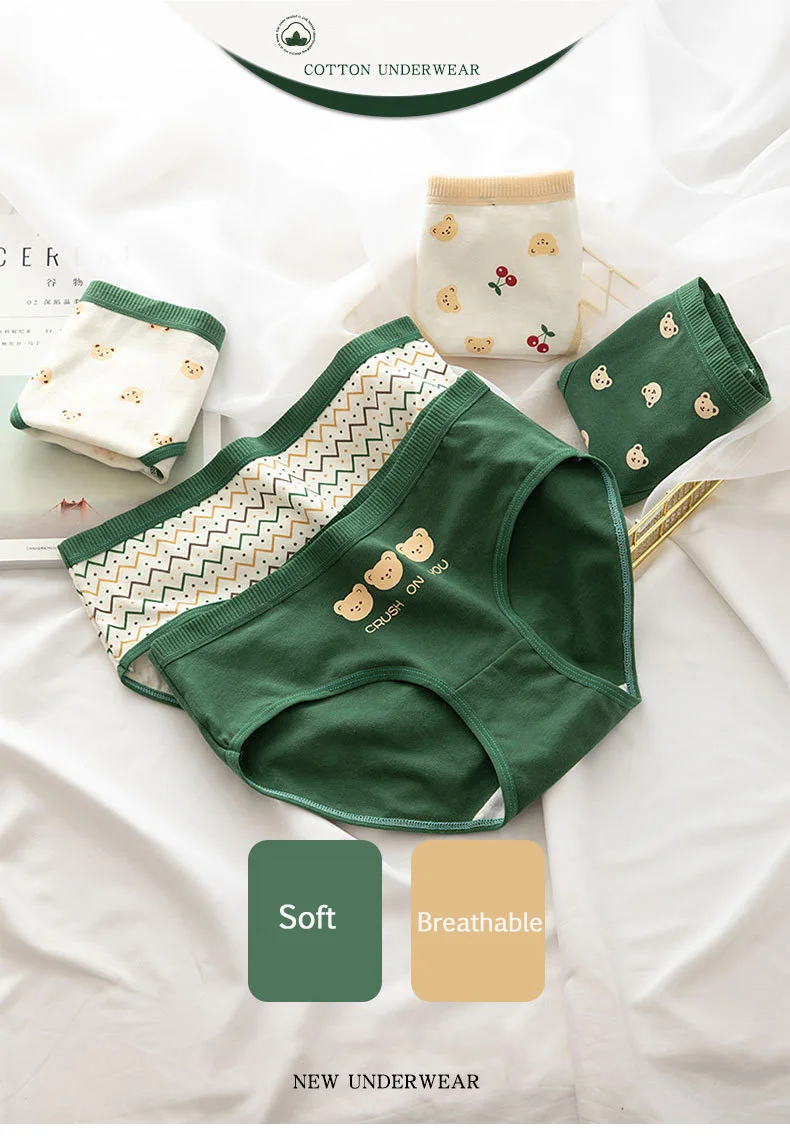 Нижнее белье женское рисунок с милым медведем, хлопковые трусы зеле...