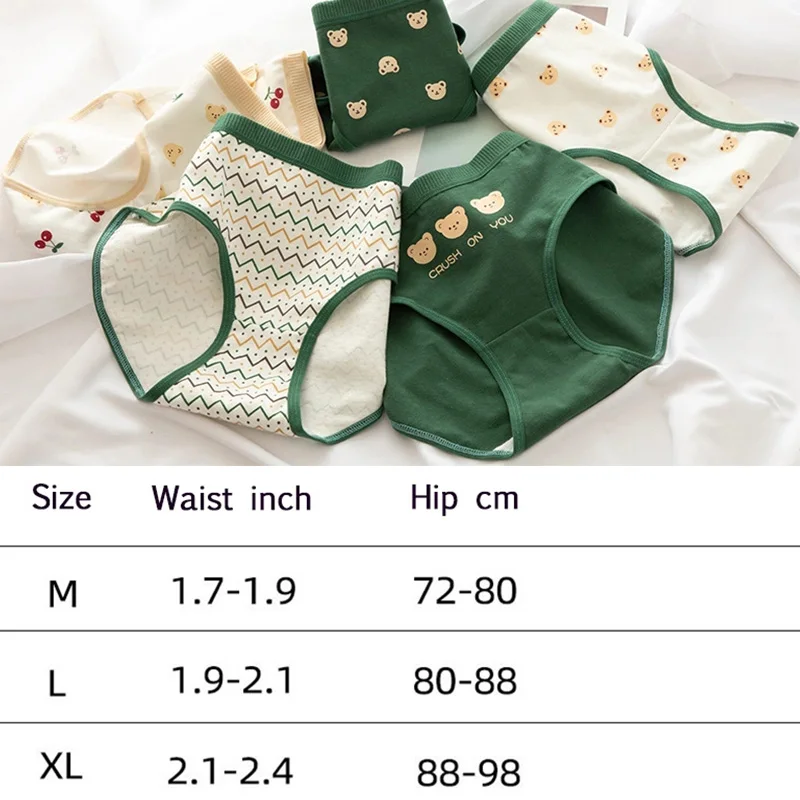 Японское нижнее белье с милым медведем для девушек, зеленое хлопков...