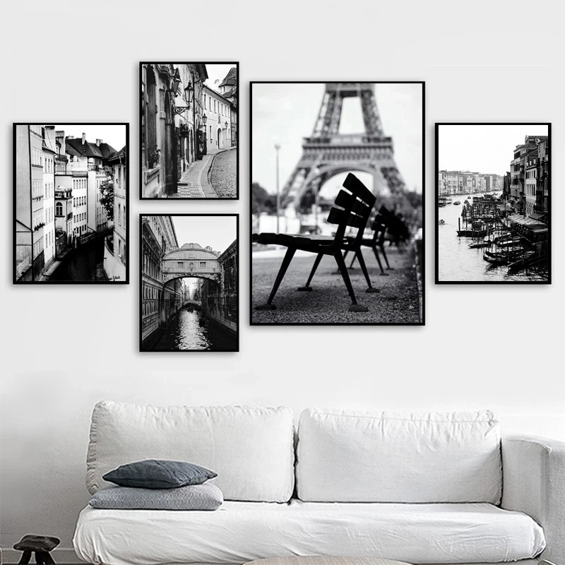 Городская Улица настенное искусство Париж Лондон холст картина на стену черные белые плакаты и принты для гостиной домашний декор плакат