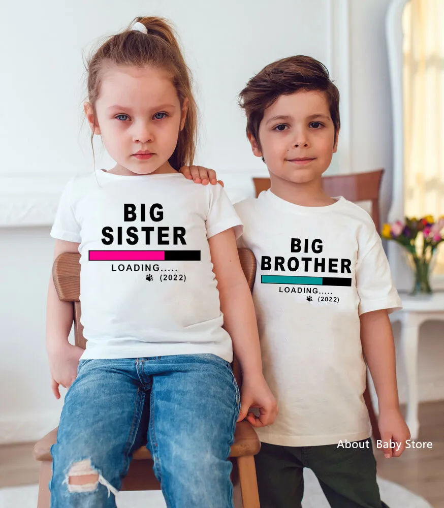 Big Brother с вертикальной загрузкой 2022 Big Sister (старшая сестра); Загрузка 2022 футболка братьев и сестер рубашка детские объявление рубашка для малыша Big Brother сестра футболка
