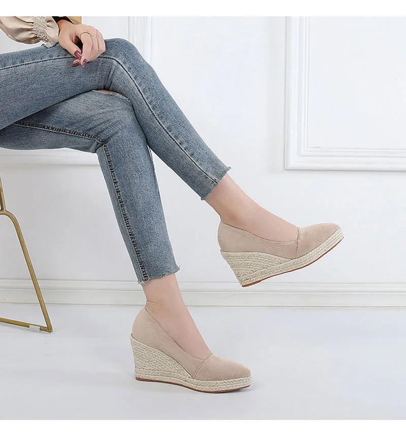 Туфли женские на танкетке 8 см, повседневные брендовые туфли-лодочки в стиле ретро, на каблуке, большие размеры 42, A3542, весна-лето 2021