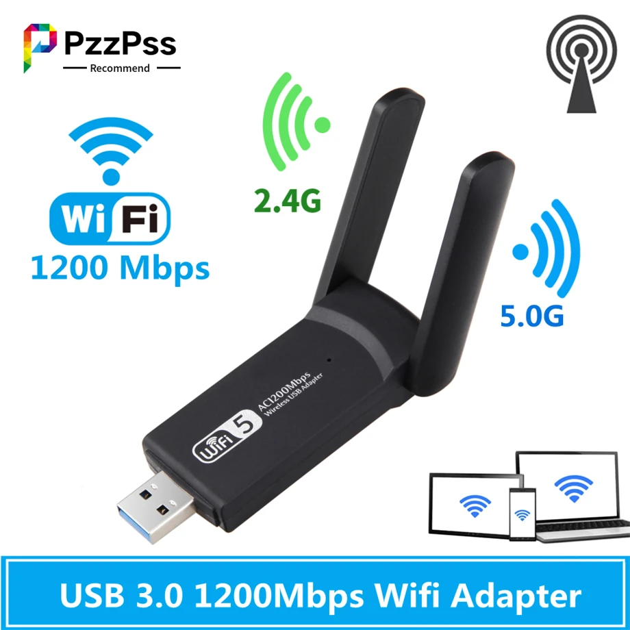 PzzPss USB3.0 1200 Мбит/с Wifi адаптер двухдиапазонный 5 ГГц 2,4 ГГц 802.11AC RTL8812BU Wifi антенна ключ сетевая карта для ноутбука настольного компьютера