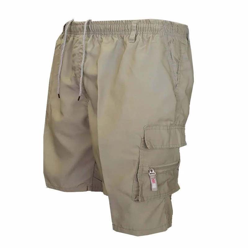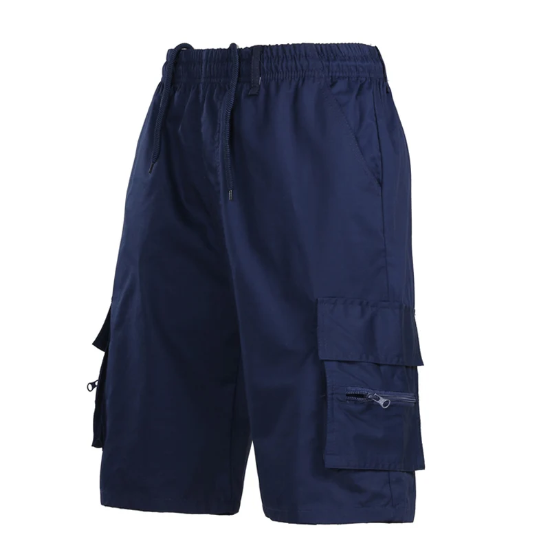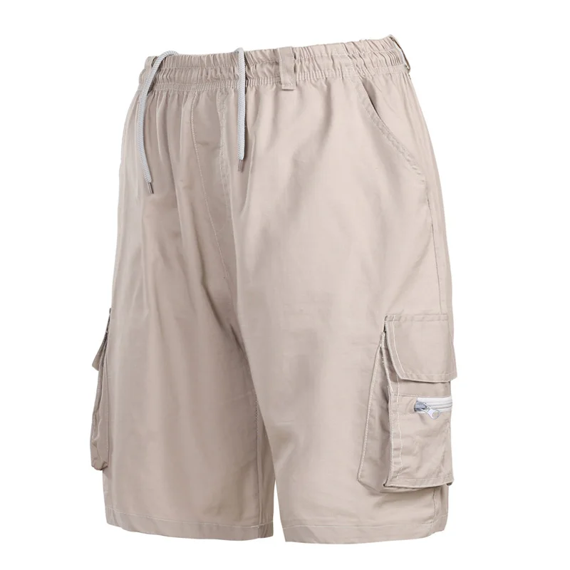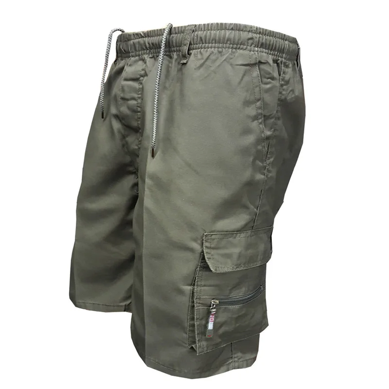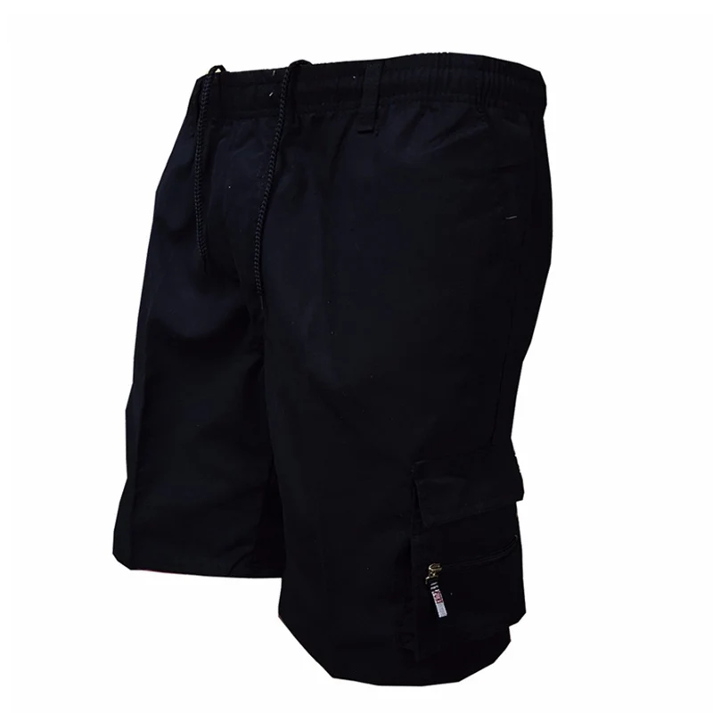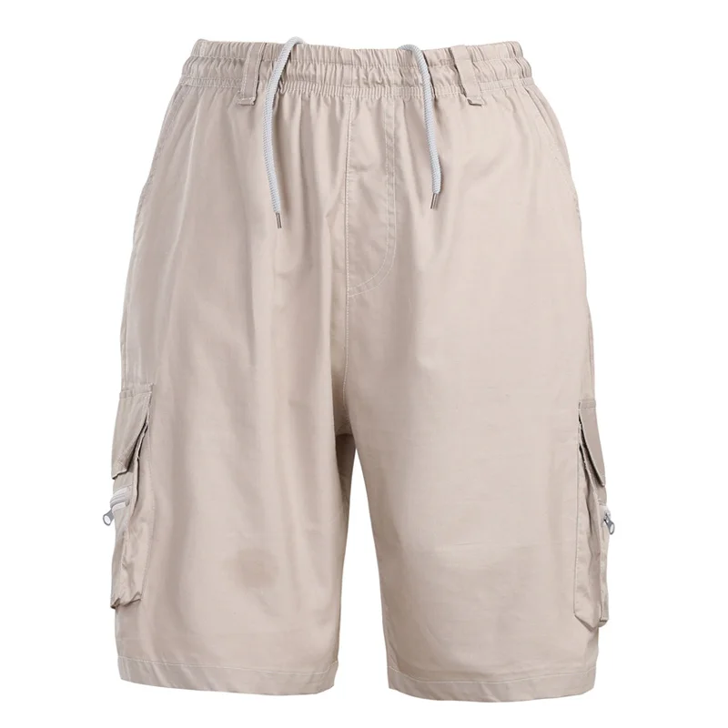 Шорты-карго мужские, летние, однотонные, до колена, с эластичной талией и карманами