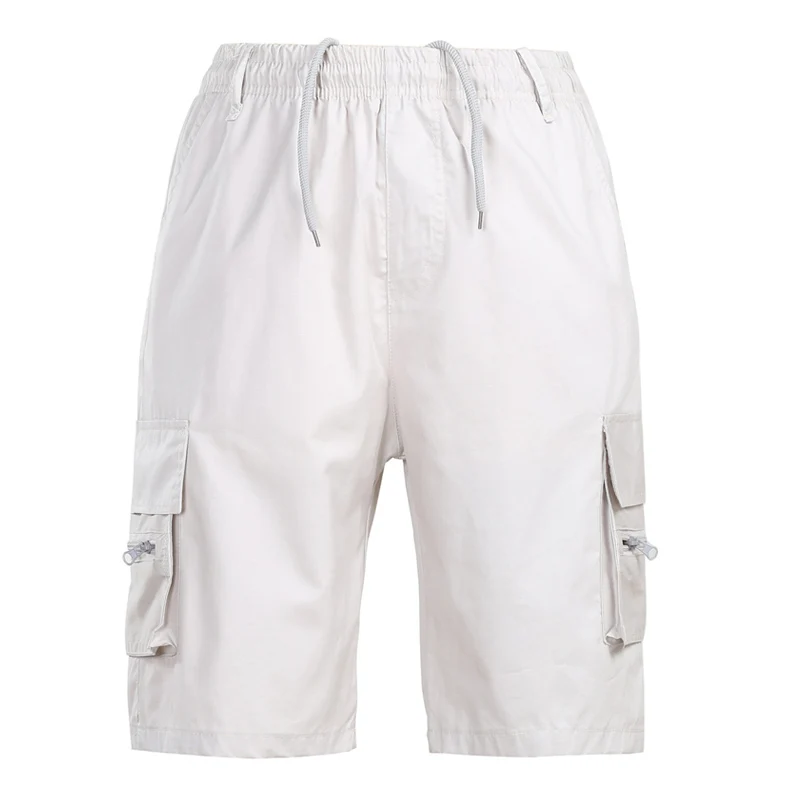 Мужские шорты, Летние повседневные однотонные шорты-карго с карманами, мужские шорты до колена со средней талией, короткие брюки оверсайз с эластичной талией, Homme