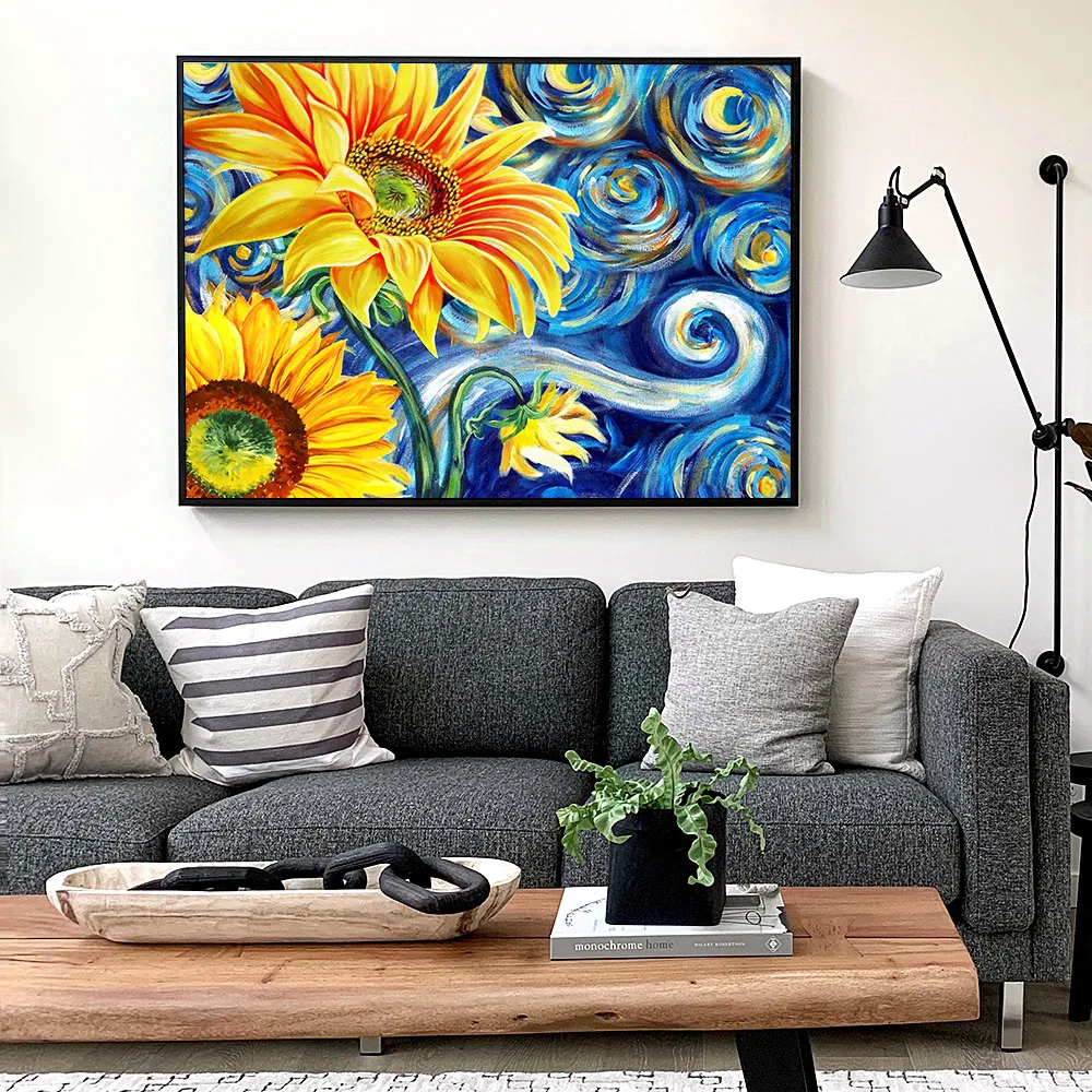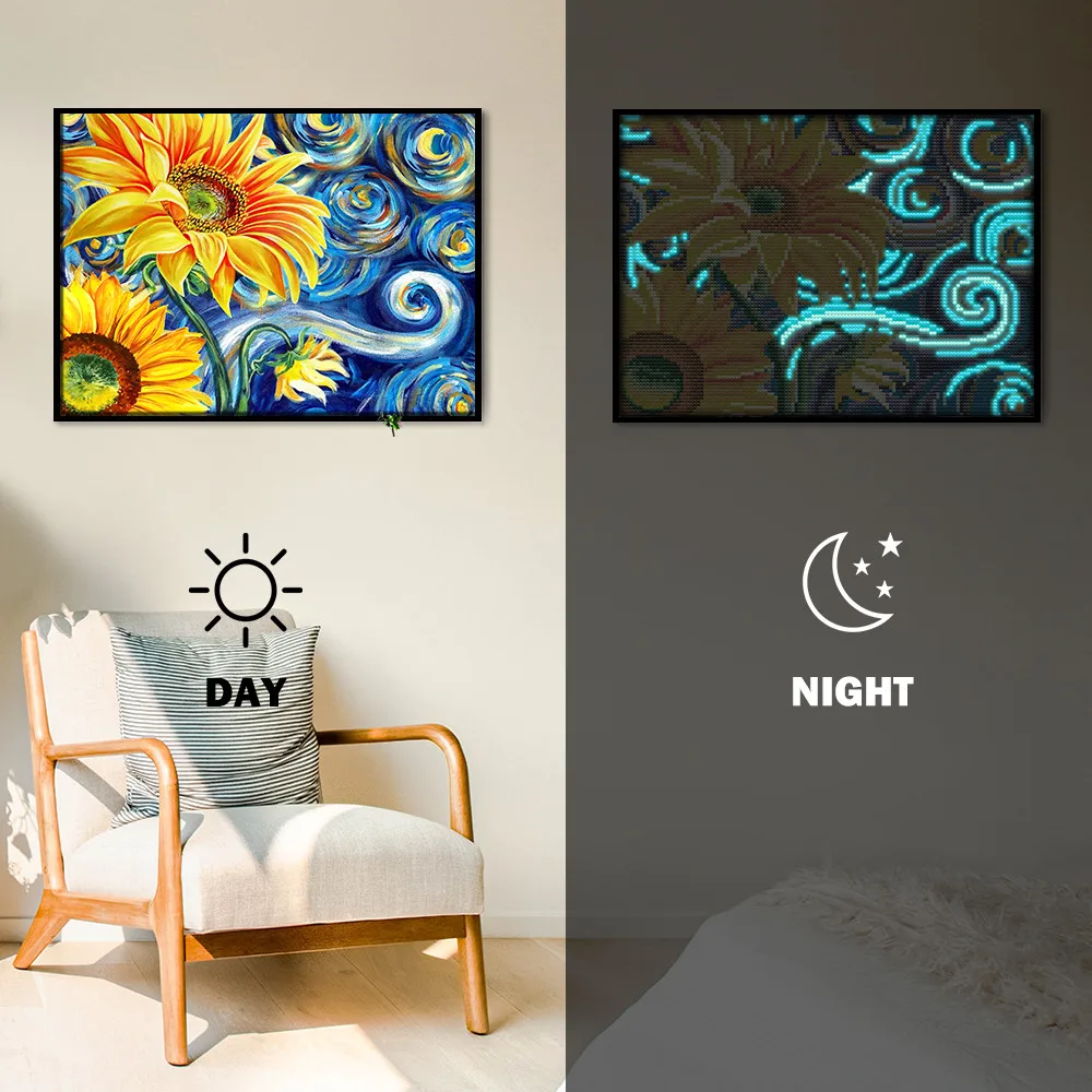 Картина 5D "Подсолнухи", светящаяся картина по номерам, для взрослых, вышивка, домашнее украшение с бриллиантами, современный подарок
