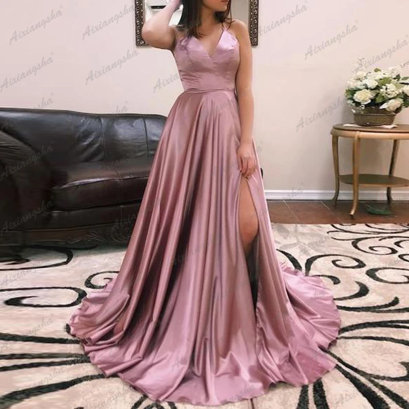 Женское атласное платье на бретельках, с V-образным вырезом, без рукавов