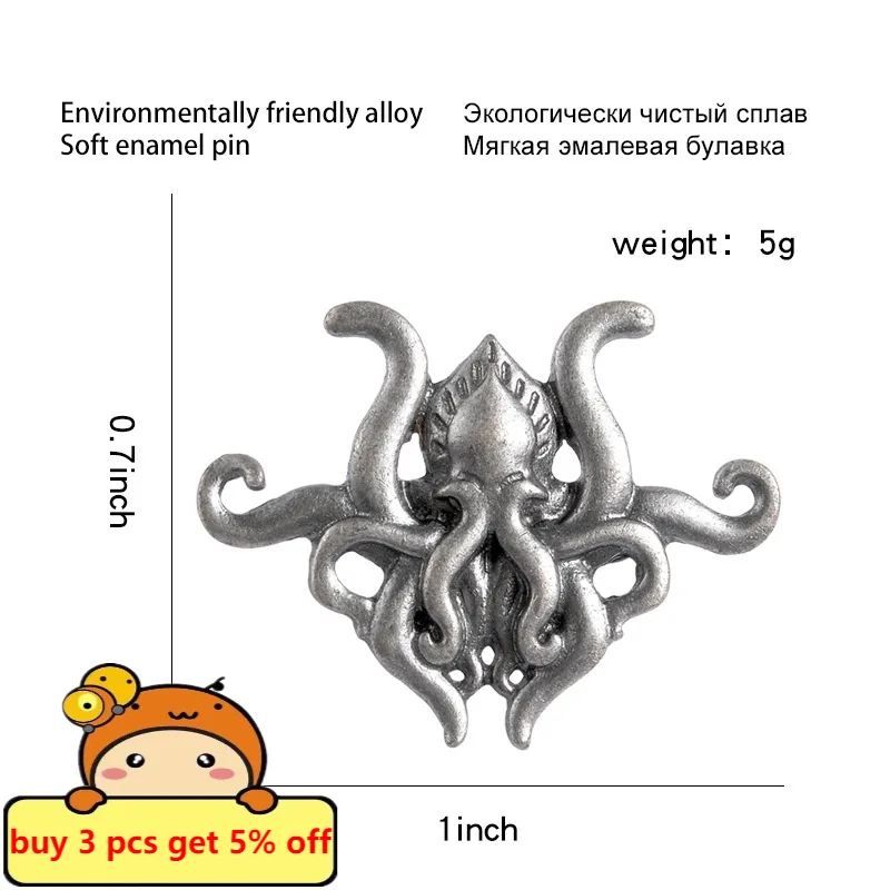 Х. П. Металлическая брошь в форме осьминога Lovecraft Cthulhu, брош...