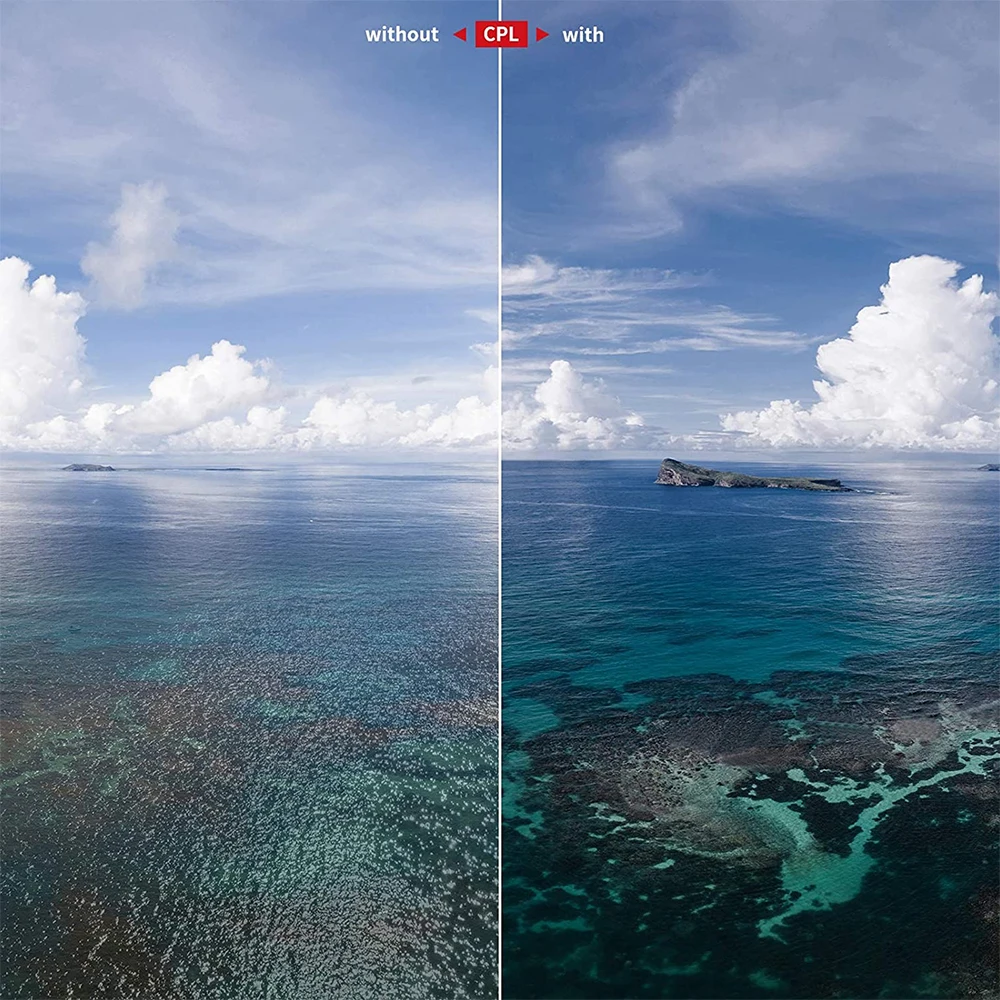 ●Он устраняет блики от отражающих поверхностей, таких как вода, снег или даже стеклянные окна при полете на открытом воздухе.