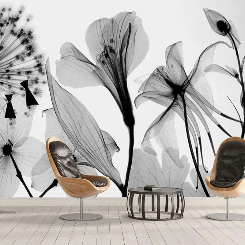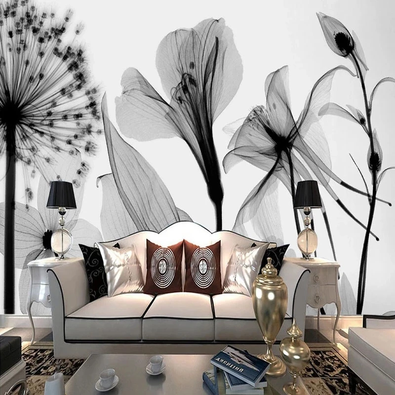 Самоклеящиеся обои, современные, ручная роспись, черный, белый, Одуванчик, цветок, 3D абстрактная живопись, водонепроницаемая картина для гостиной