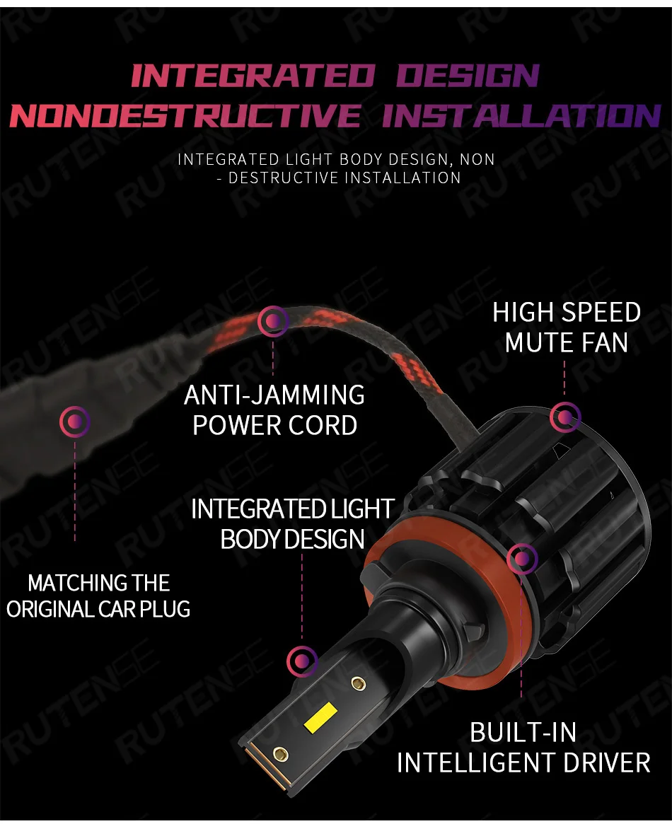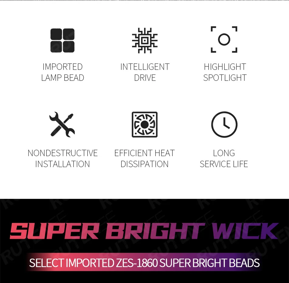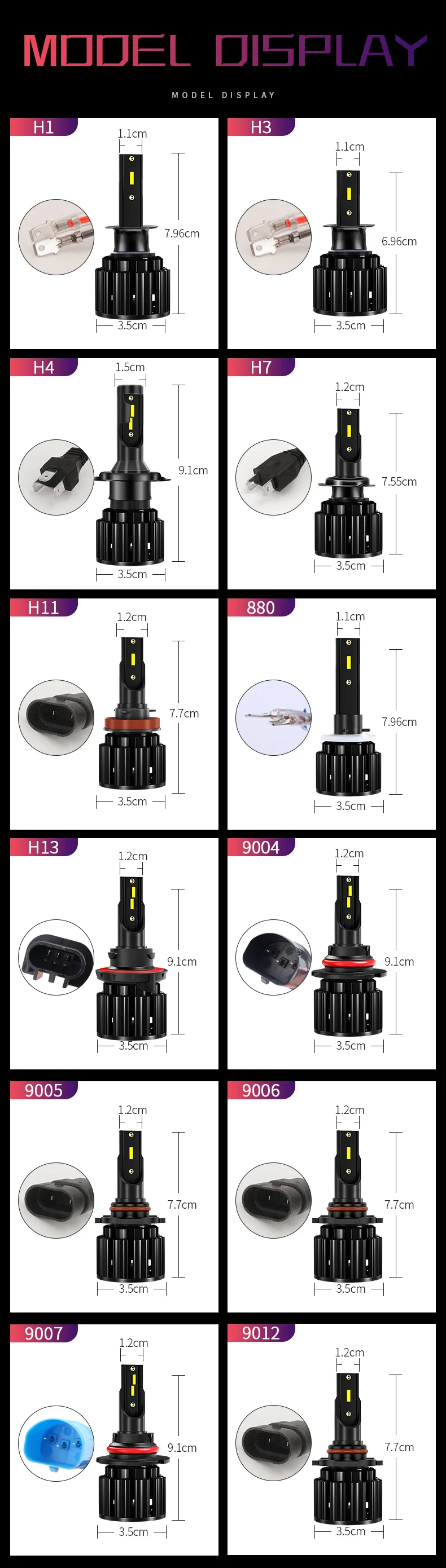 Информация о продукте 1. Мощность: 80 Вт 2. Лампы: ZES 1860 светодиодные чипы 3. Напряжение: 12 В 4. Срок службы: >50000 часов (часов) 5. Цветовая температура (цвет): 6500K 6. Люмен (яркость): 16лм 7. Функция: защита от помех EMC 8. Светодиодные модели: H1, H3, H7, H11/H8/H9, 9005/HB3/H10, 9006/HB4, H4/HB2/9003