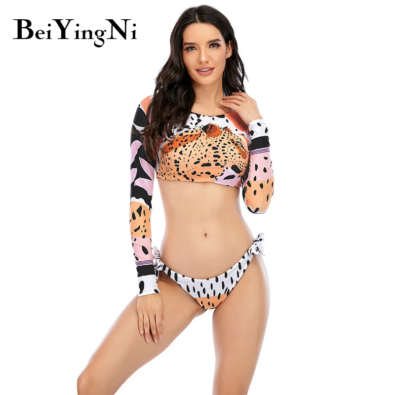 Beiyingni женский купальник 2021, бандажный комплект бикини с леопардовым принтом, бандо, стринги, Пляжная микро-одежда, купальный костюм, бикини, одежда в стиле бохо