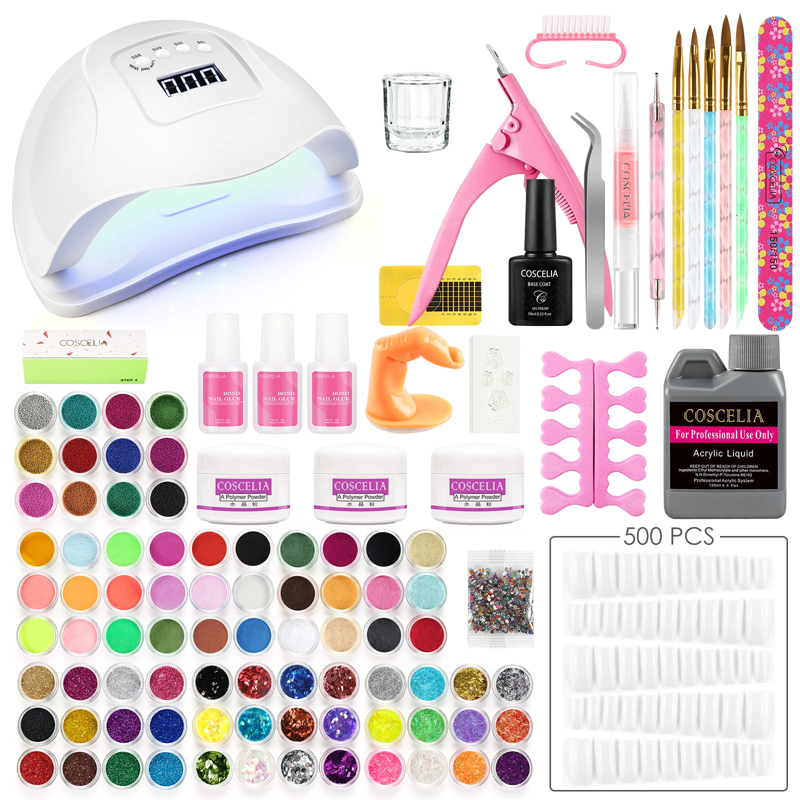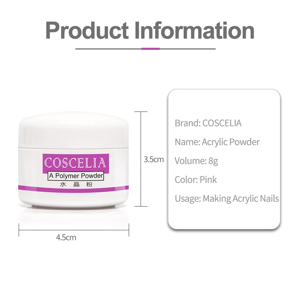 Акриловый набор COSCELIA, маникюрный набор для ногтей с акриловой жидкостью, блестящий порошок для ногтей, декоративные акриловые кисти, инструменты для ногтей