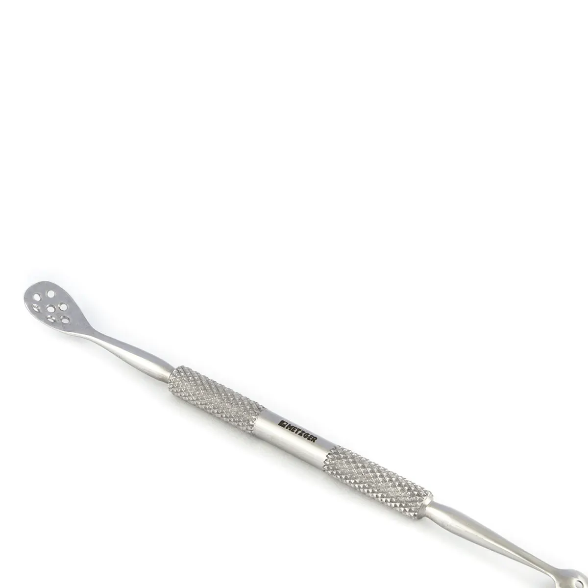 Ложка - УНО двухсторонняя для экстракции ( удаления) комедонов, черных точек, угрей, прыщей. Шумовка и УНО - шумовка предназначена для массового удаления открытых комедонов (черных точек) при помощи надавливания на зону очистки и смещая немного в сторону, как бы протаскивая ложку по коже. УНО - предназначена для экстракции крупных элементов: миллиумов, закрытых комедонов, воспалительных элементов. Не забывайте от том, что перед экстракцией комедонов важно распаривать кожу вапоризатором ( паром), либо гелем холодного гидрирования под пищевую пленку, иначе, вы порвете и повредите эпидермис! Также, важно обрабатывать поверхность кожи хлоргексидином, либо специальным раствором, чтобы не занести заразу.