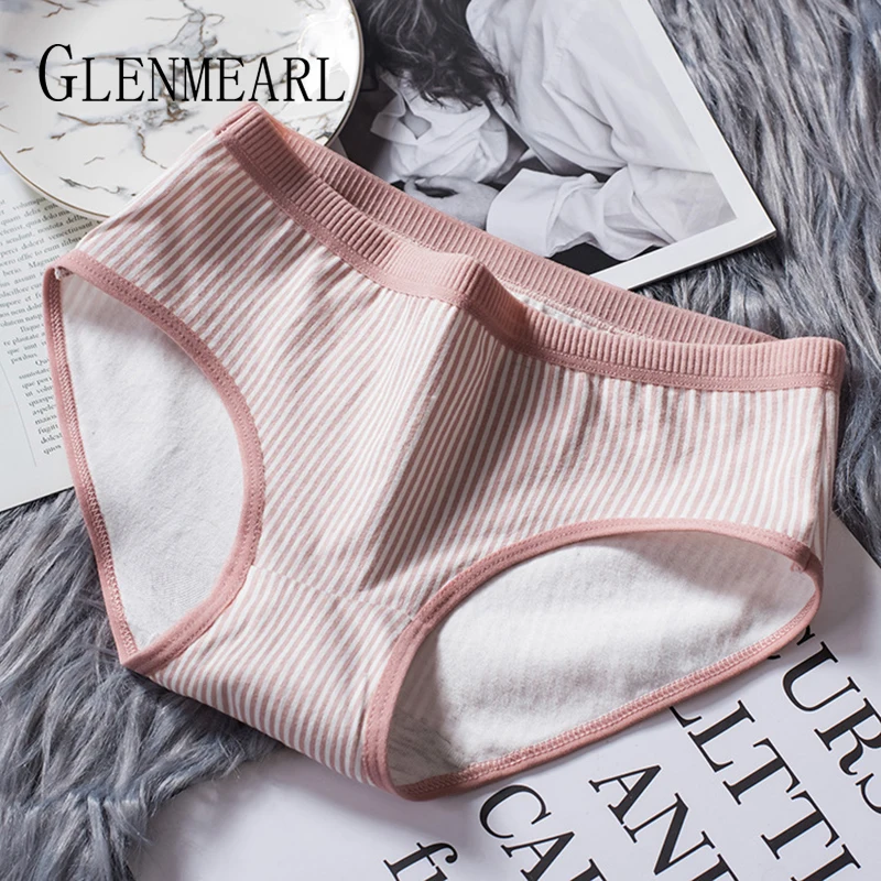 Женские брифы 1Pac, женское Мягкое хлопковое нижнее белье, новинка 2021, Полосатое нижнее белье для девушек, Симпатичные трусы средней посадки в японском стиле