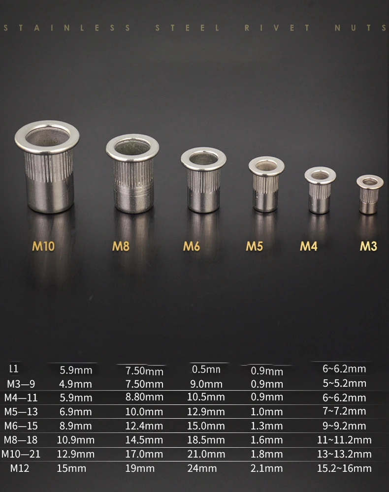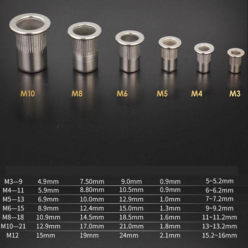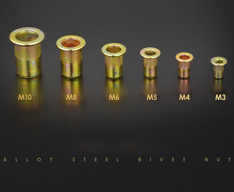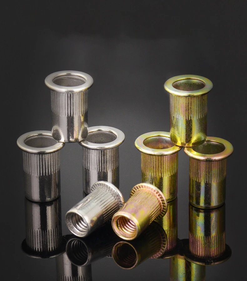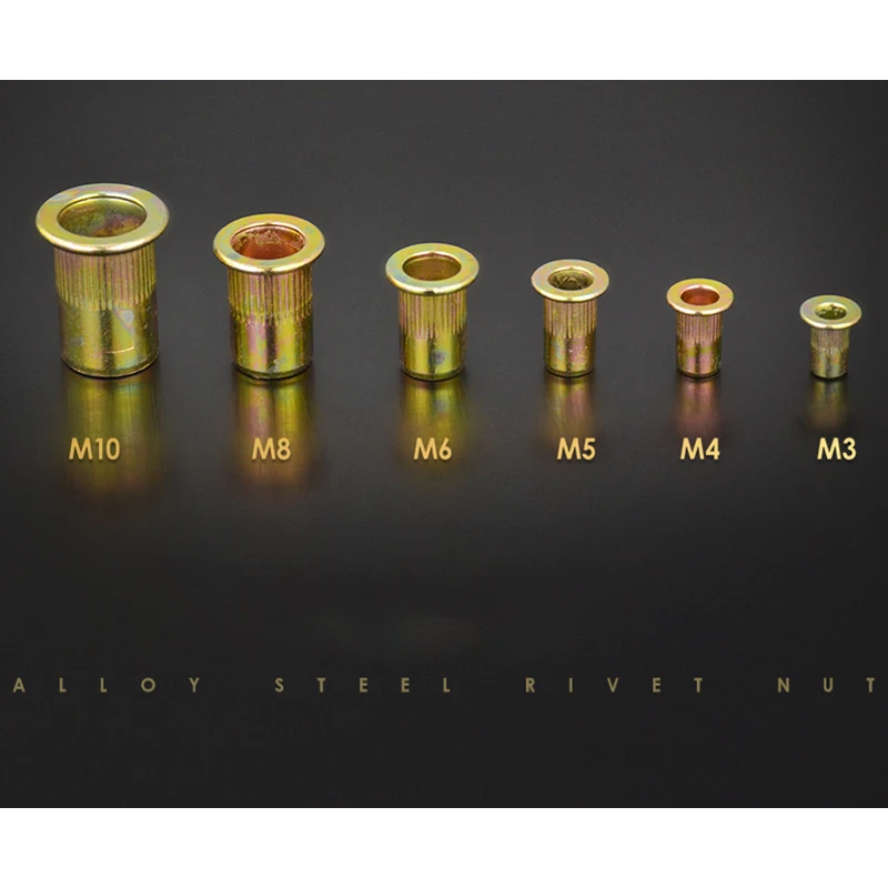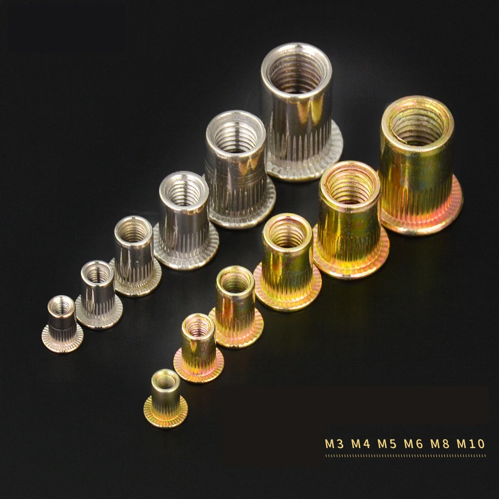 Заклепочная гайка M3 M4 M5 M6 M8 M10 M12, рифленые гайки Rivnut, плоская головка, заклепки с резьбой, заклепка с плоской головкой
