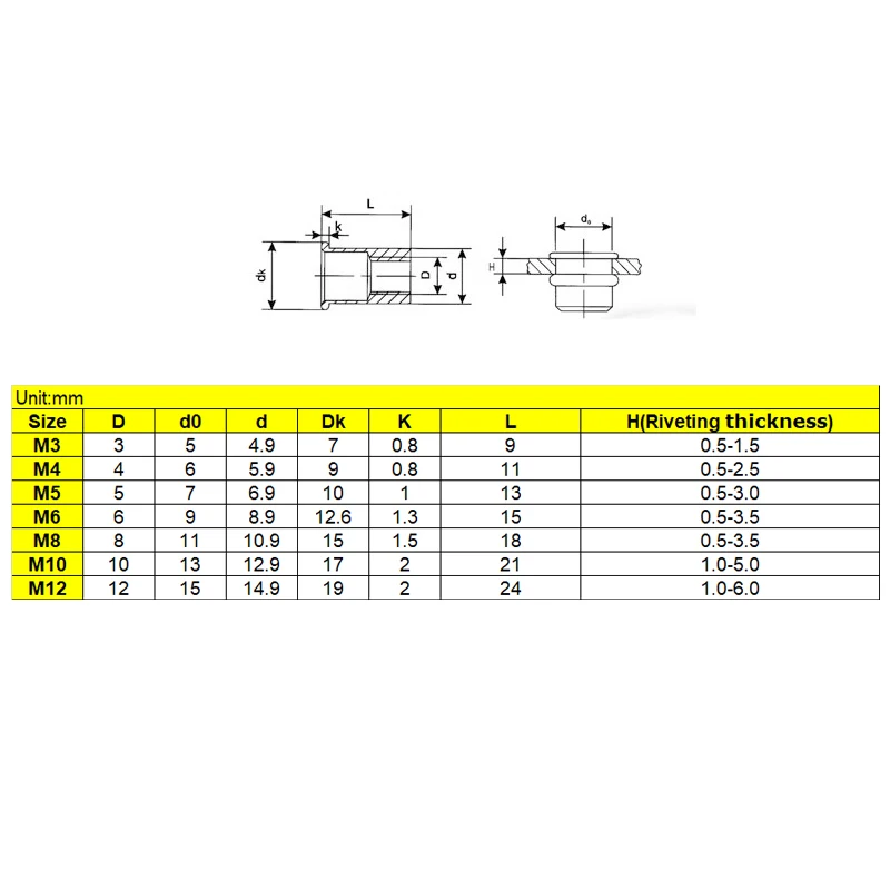 Имя:Гайки с плоской головкой заклепки с резьбой