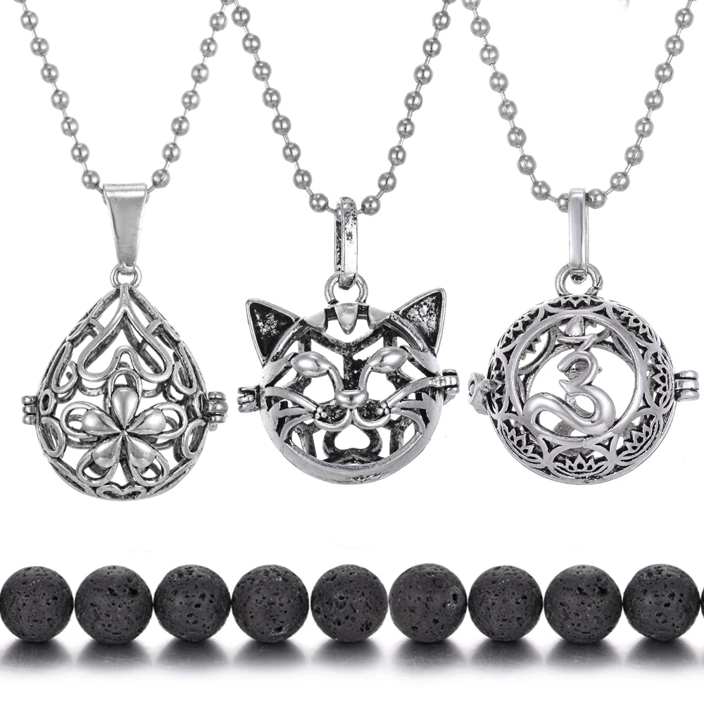 Ожерелье из вулканического камня, лава, милая кошка, дерево, цветок, диффузор эфирного масла, ожерелье для ароматерапии, винтажная подвеска