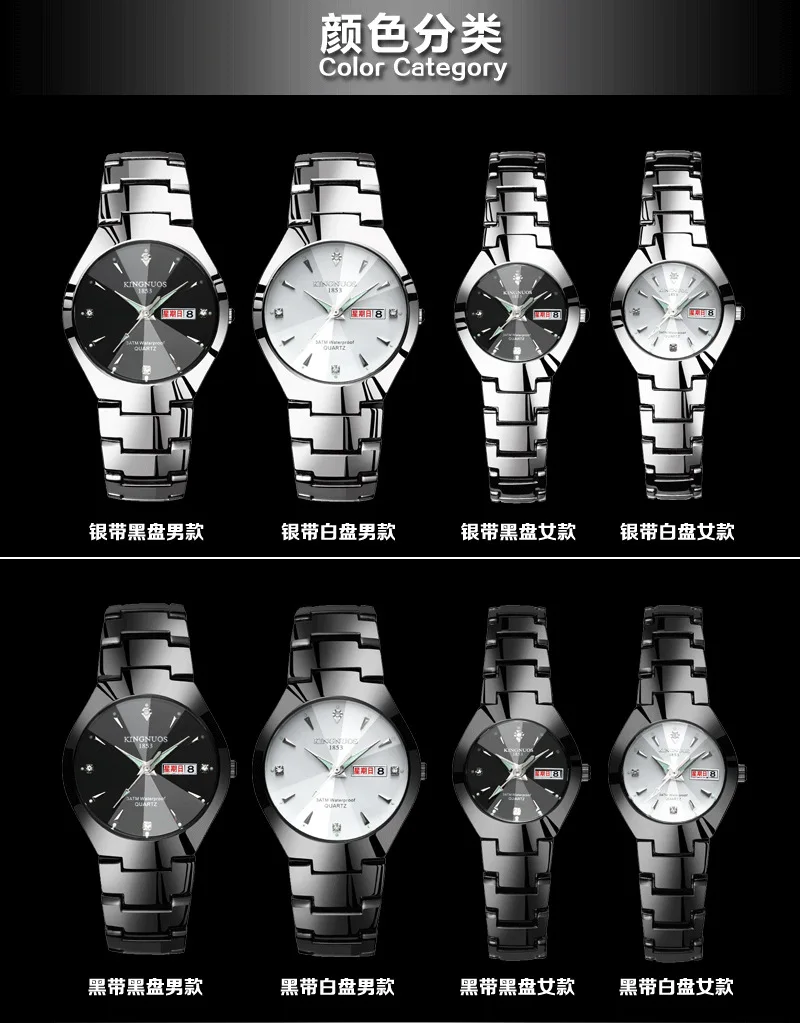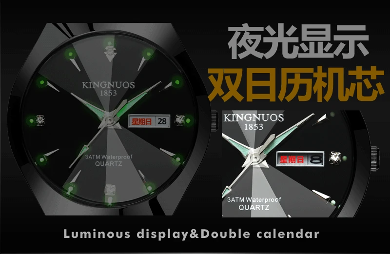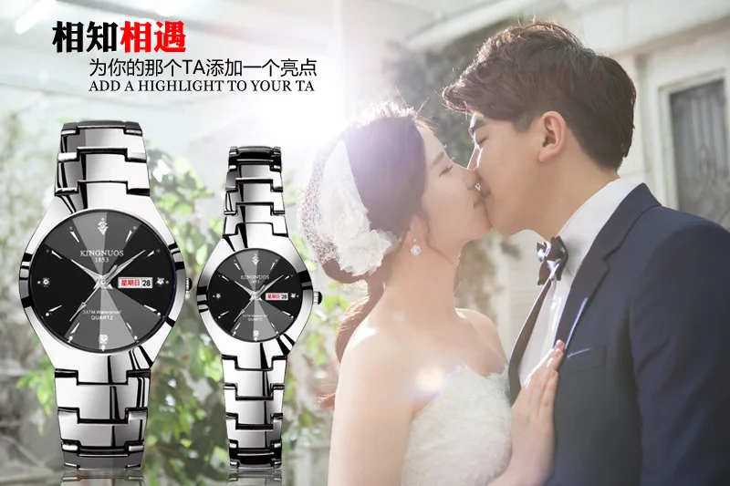 KINGNUOS 186 автоматические кварцевые часы со стальным ремешком для пары светящийся календарь Мужские и женские мужские водонепроницаемые студенческие наручные часы