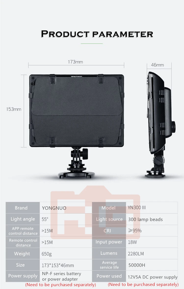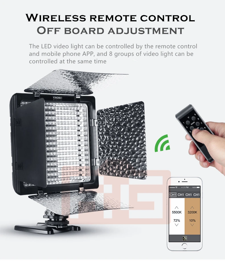 5.YN300III оснащен цифровым регулятором яркости энкодера, который можно регулировать отдельноДля грубого затемнения и тонкого затемнения режимов более удобен в использовании.