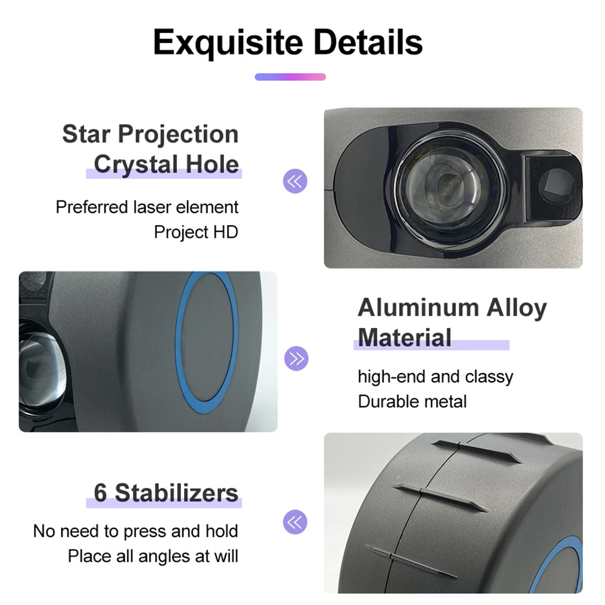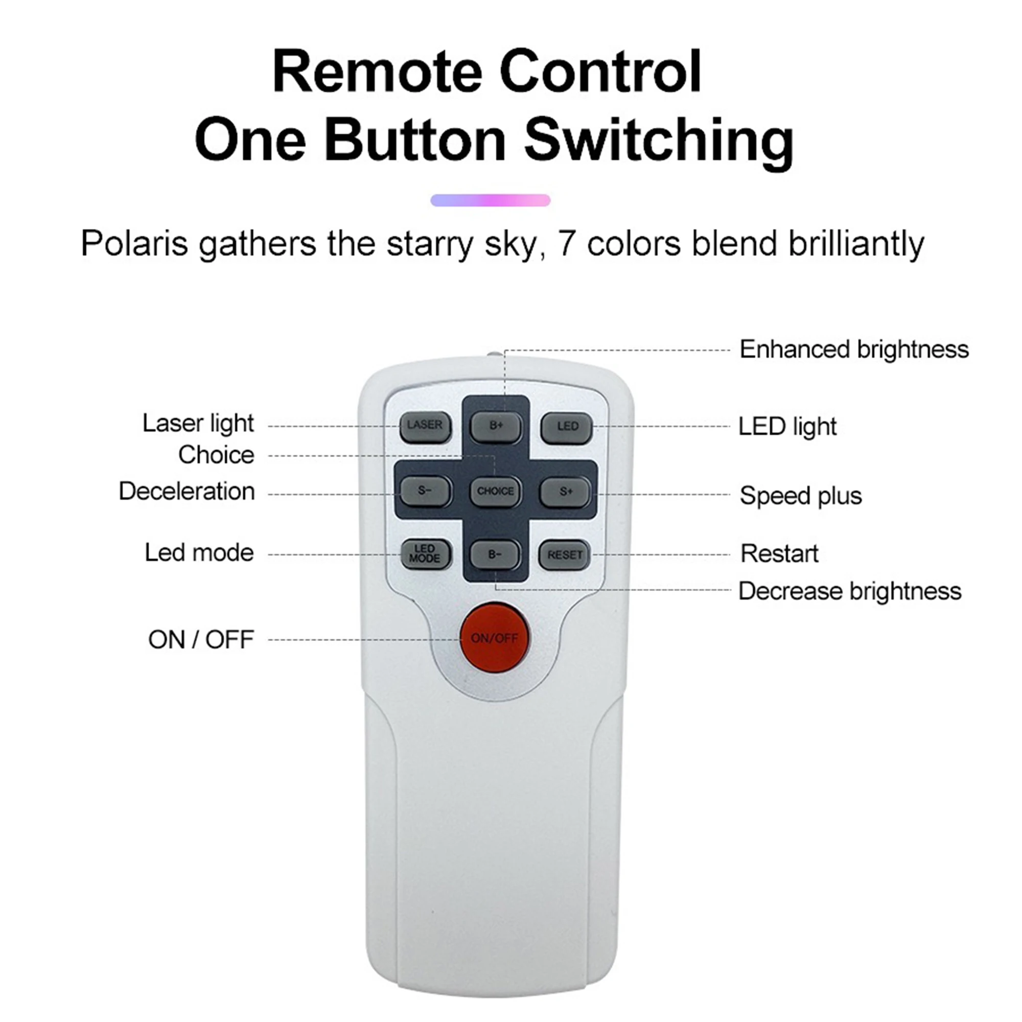 Динамическая проекция 7 цветов: разные цвета в сочетании с динамической проекцией ночного неба на разной скорости создает расслабленную, романтическую и красочную атмосферу проекции пространства, демонстрируя великолепное звездное небо.Пульт дистанционного управления: Вам больше не нужно беспокоиться о том, чтобы подняться или уснуть на диване, чтобы включить или выключить ночсветильник. Пульт дистанционного управления также может управлять светильник том проектора звездного неба, красосветильник Том, регулировать яркость, включать/выключать свет по желанию и менять режим освещения.Подарки для семьи и детей: ночсветильник с проектором звездного неба подходит для дней рождения, вечеринок, свадеб, украшения комнаты, дня детей, Рождества, подарков на годовщину, создания прекрасной и звездной атмосферы, помогает детям вдохновлять любопытство, воображение и творческие способности. Он также очень подходит для внутренней отделки, такой как волнопроекторы, освещение романтической атмосферы, ночники и прикроватные светильники.Информация о товаре:Максимальная мощность светодиодный да: 2*4 ВтЗеленый лазер: <1 мВтПотребляемая мощность: AC110-220VРабочая температура: 14 ℉ и 104 ℉ (от 0 ℃ до 40 ℃)Площадь проекции: 161-538 квадратных футов (15-50 °)Упаковочный лист:1 Лампа для проектора Galaxy Starry Sky1 х адаптер питания1 х Руководство пользователя