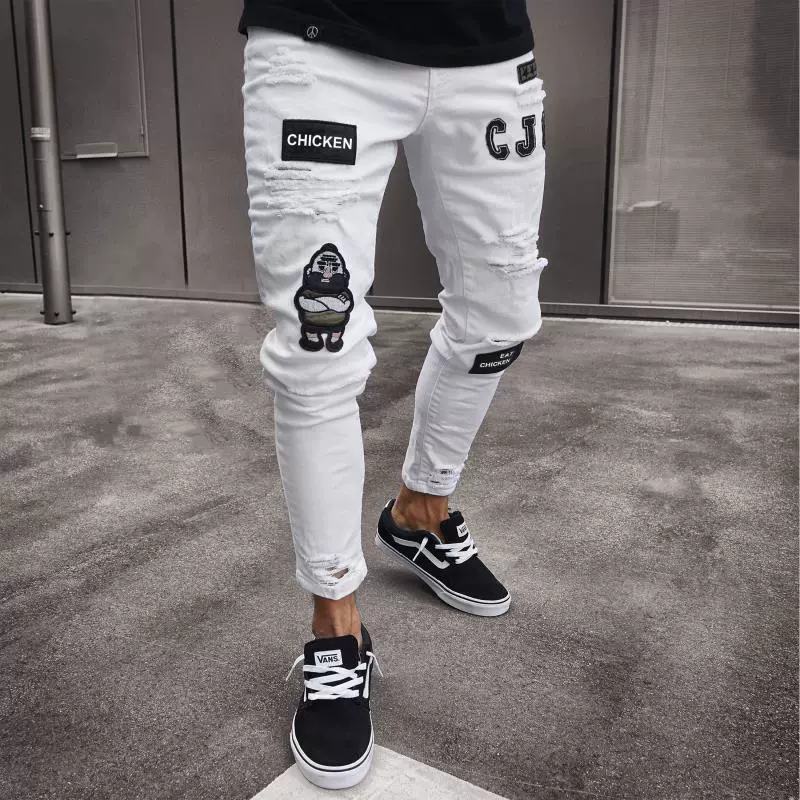 Джинсы-Карандаш мужские с вышивкой, тонкие брюки из денима, Повседневные Классические штаны для молодых ковбоев, для бега