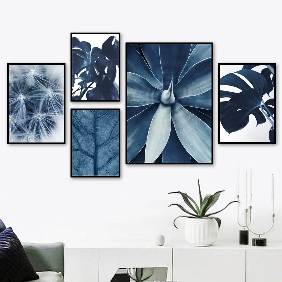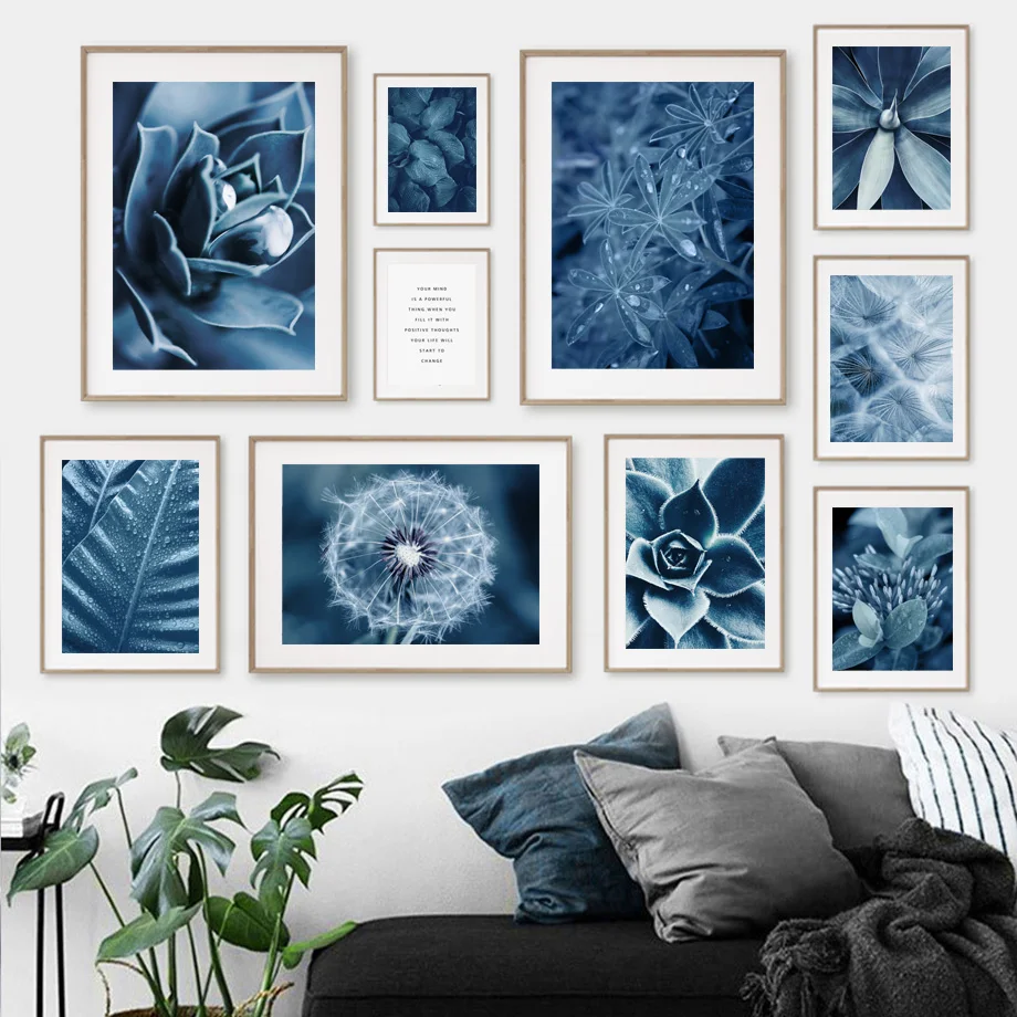 Синий одуванчик пион Пальмовые Листья росы настенная живопись холст...