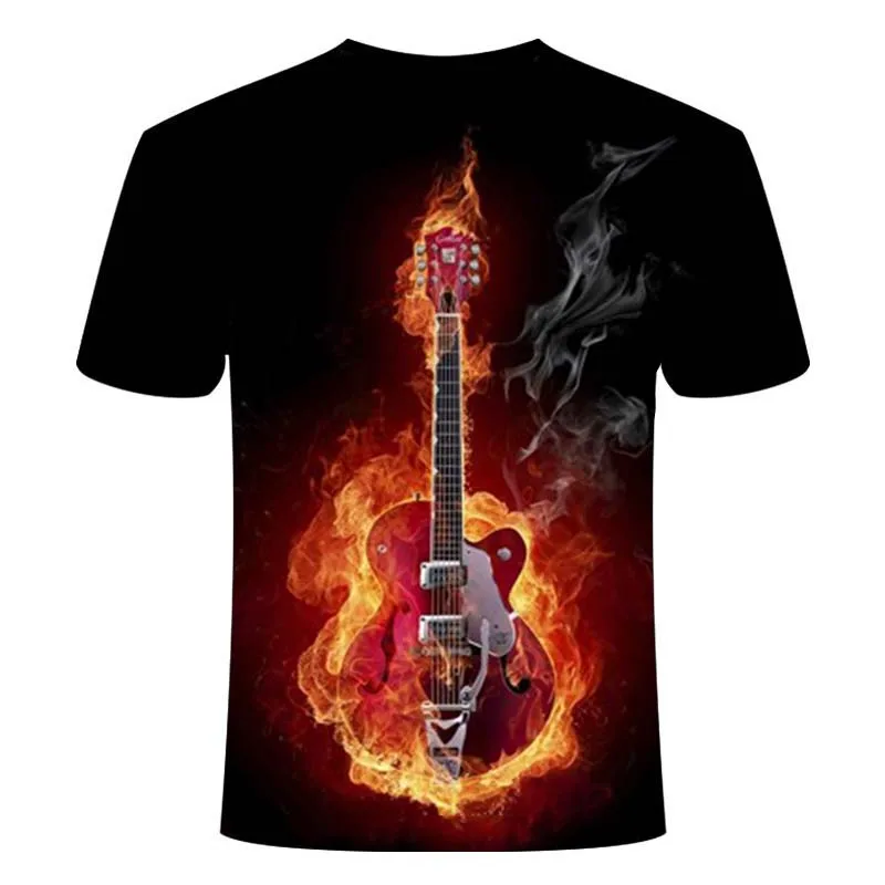 Футболки с изображением гитары, пламени, топы, летняя уличная одежд...