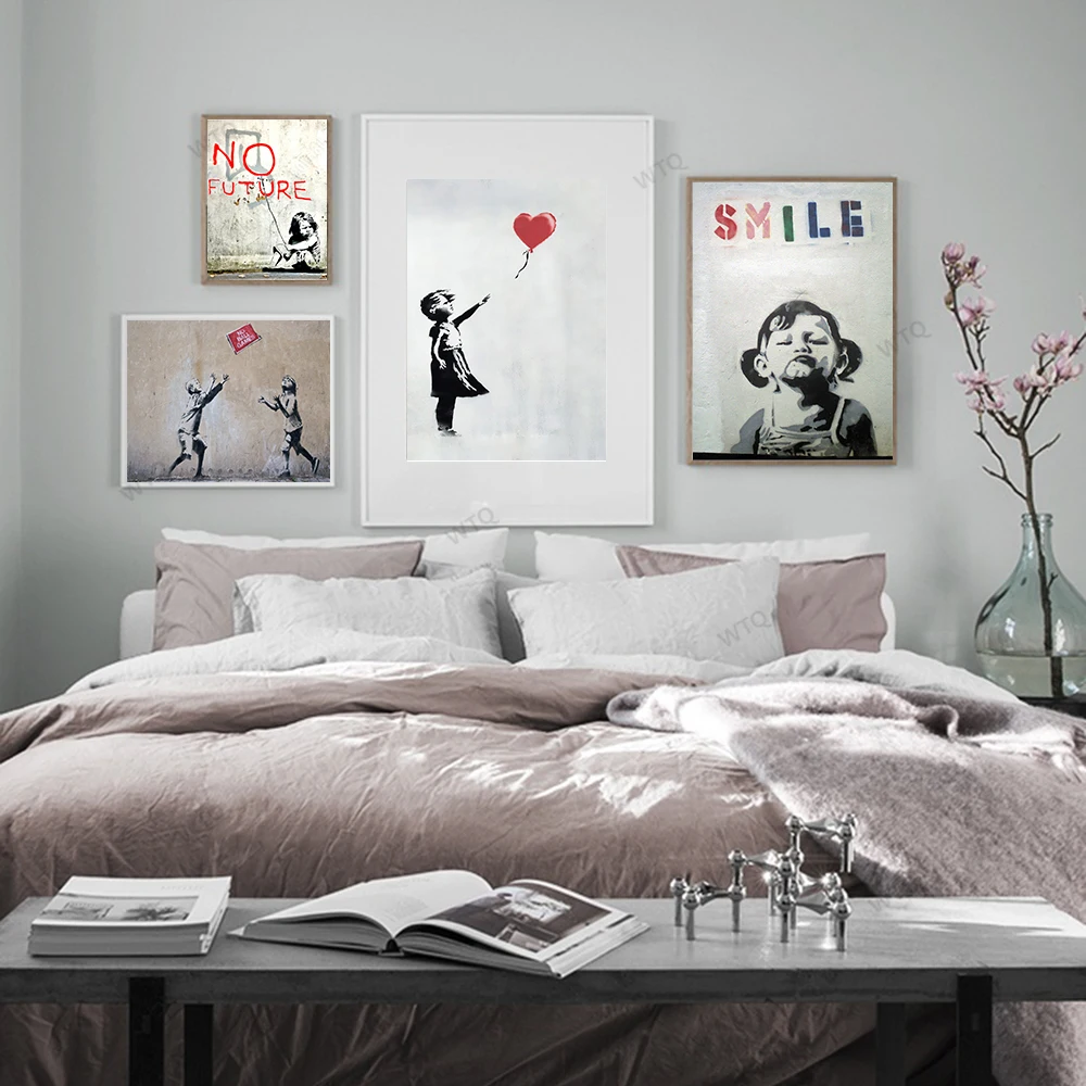 Абстрактная девушка WTQ, настенная Картина на холсте, бански, искусство, Ретро плакат, черно-белая настенная декорация, настенное искусство, картина, декор для комнаты, домашний декор