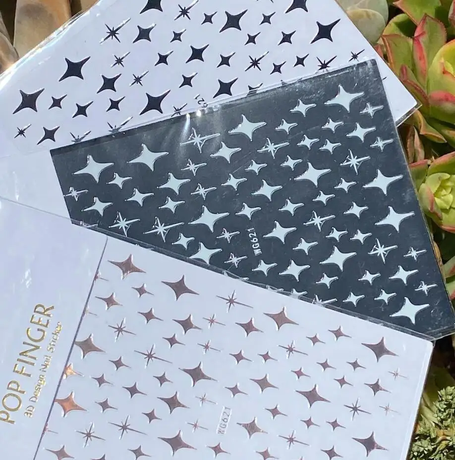 1 шт., 3D дизайн, четыре угла, звезды, наклейки для дизайна ногтей, украшение 10х9см, наклейки на ногти, золото, серебро, наклейка для полировки, аксессуары для маникюра