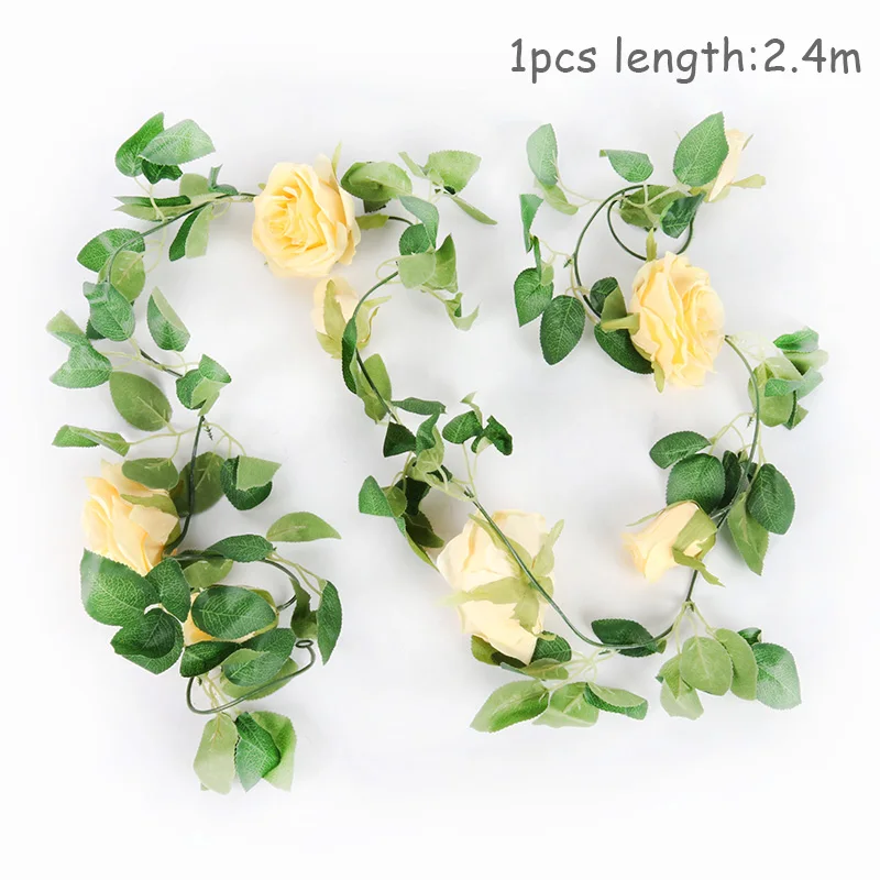 2,4 м шелковая искусственная Роза лоза цветком ручной работы для настенные украшения сада на открытом воздухе поддельные растения листья Гирлянда Свадебный Декор для дома