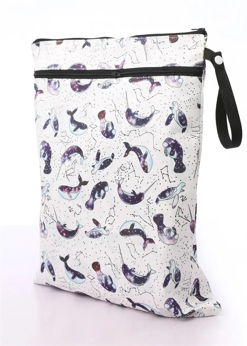 Двухслойная Водонепроницаемая Дорожная сумка на молнии, мультяшная сумка для хранения, подвесная сумка для детской коляски, сумка для влажного хранения подгузников