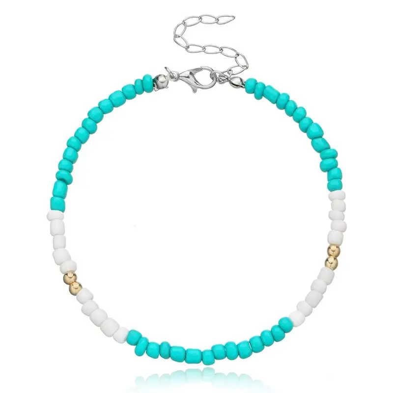 Цвет браслета на ногу: многоцветный, синий, белый и золотистый, серый