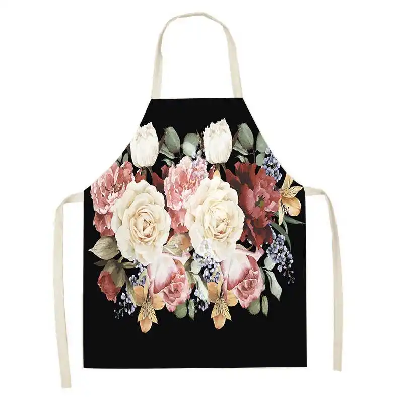 Кухонный Фартук для женщин 65x53 см, льняные фартуки с принтом розо...