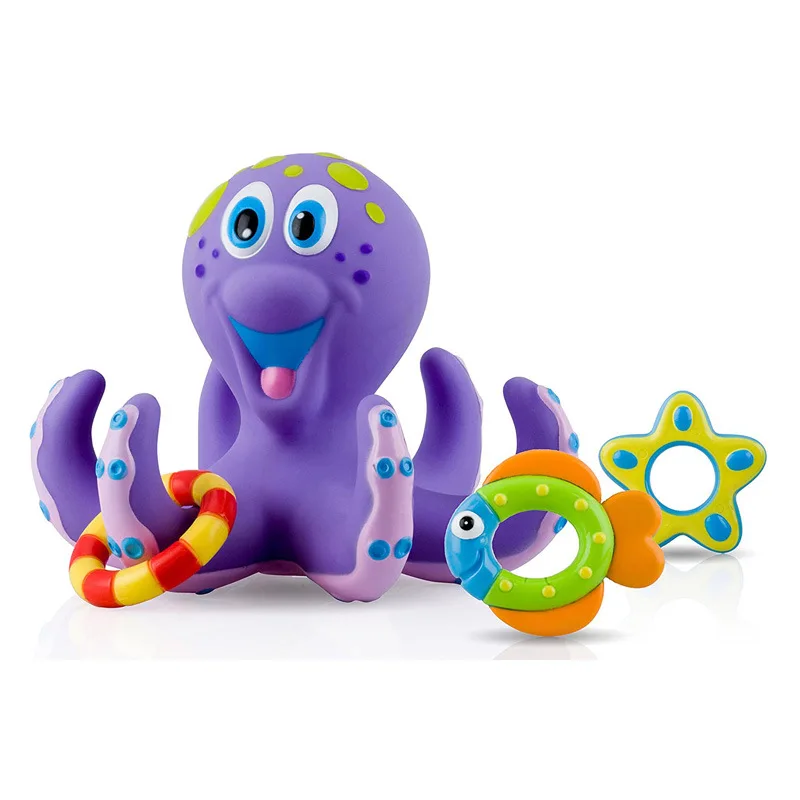Игрушка детская для ванны, плавающий в воде милый мультяшный фиолетовый Осьминог с 5 кольцами Hoopla, Интерактивная игрушка для ванны, подарок для детей
