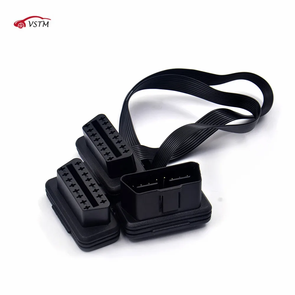Плоский + тонкий 16Pin OBD 2 удлинитель для головок OBD2 16 Pin ELM327 Мужской Двойной Женский Y сплиттер локоть OBDII удлинитель соединительный кабель с разъемом кабеля