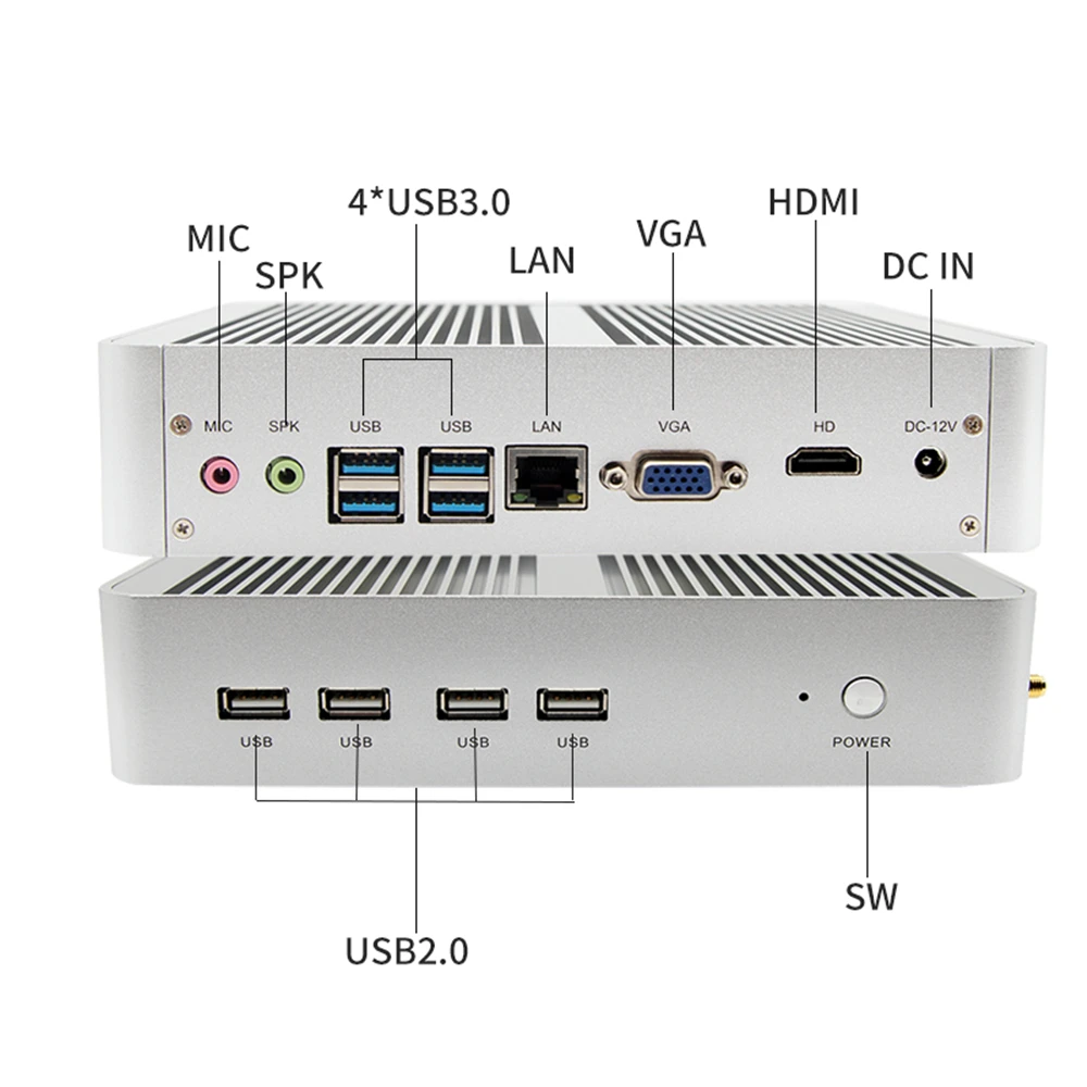 4 * Порт USB 3,0;4* Порт USB 2,0; 1(2)* RJ45 Gigabit LAN; 1 * VGA(DP); 1 * HD; 1 * DC In;