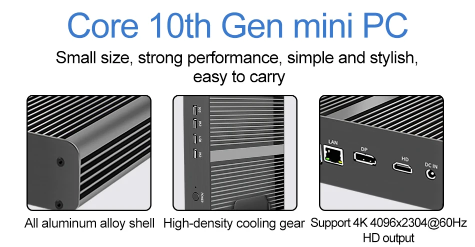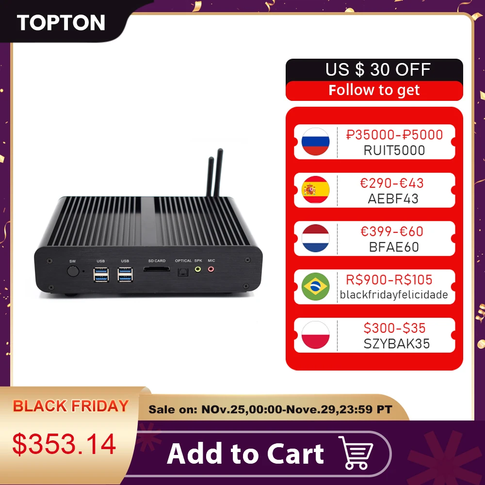 Безвентиляторный настольный компьютер Topton Nuc, Intel Core i7 10710U i5 8265U, Windows 10, аппаратное обеспечение 2 * DDR4 M.2 4K HTPC, мини-ПК