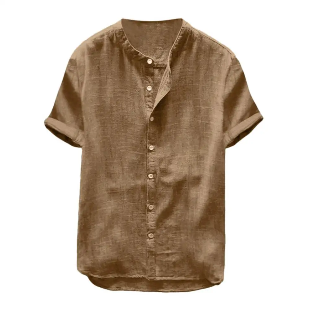 Мужская повседневная Однотонная рубашка из хлопка и льна, с коротким рукавом, на пуговицах, Пляжная свободная, 50%