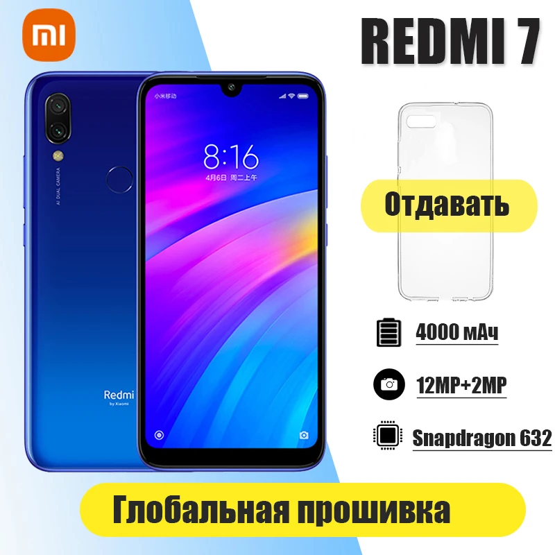 Оригинальный Смартфон Xiaomi Redmi 7 с чехлом для телефона, сотовый...