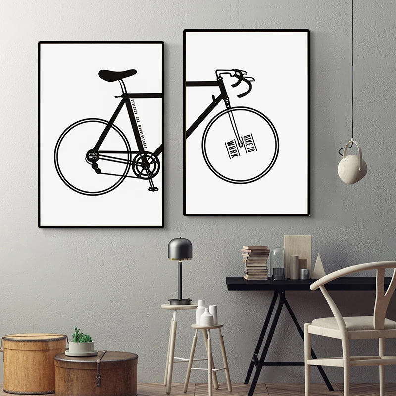 Велосипедный постер в скандинавском стиле, черно-белая Картина на холсте, Настенная картина, картина для гостиной, спальни, скандинавский Декор для дома