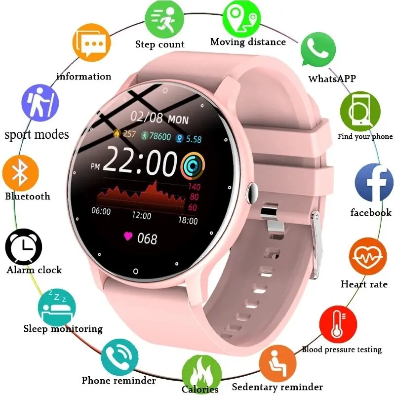 Смарт-часы MEGIR для мужчин и женщин, спортивные электронные смарт-часы для фитнеса, водонепроницаемость IP67, розовые, 2021