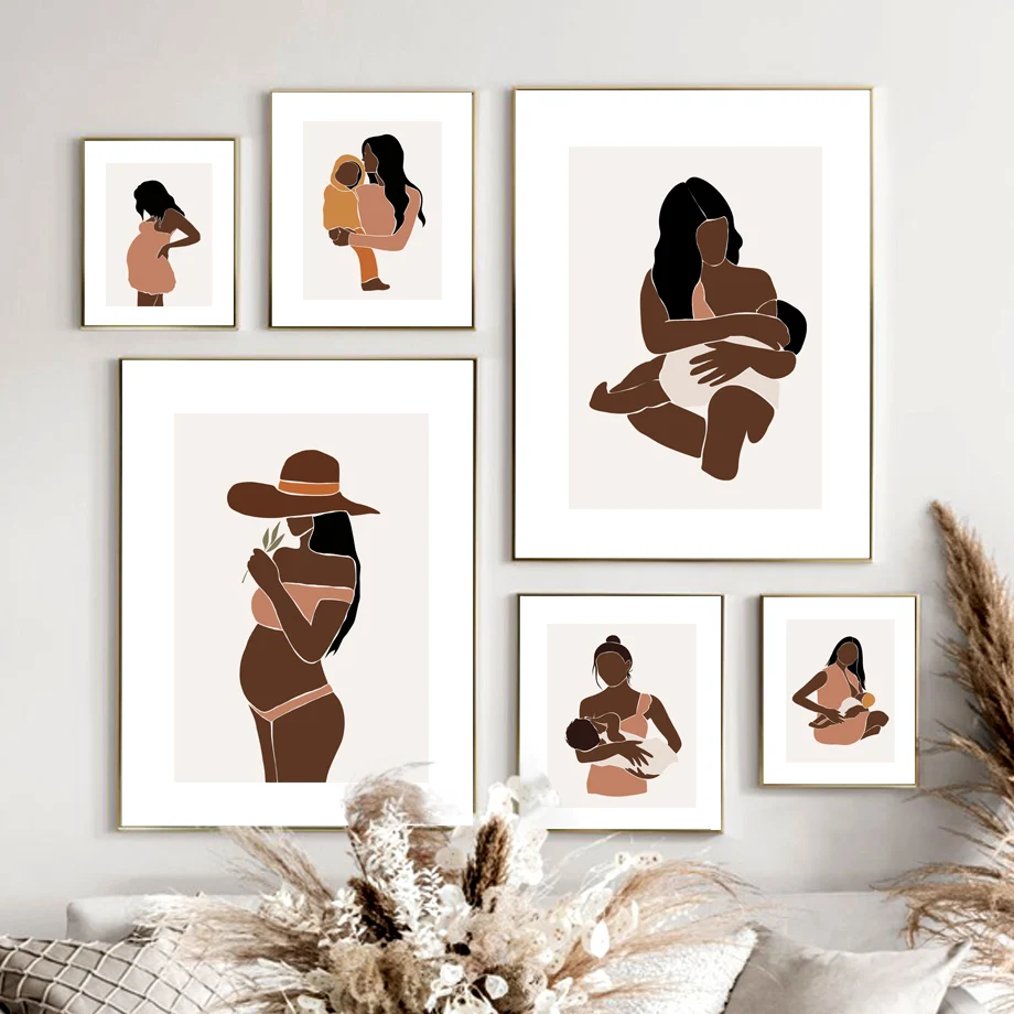 WTQ настенная Картина на холсте черная девушка беременная мама дети африканские скандинавские плакаты принты декор комнаты картины украшение дома
