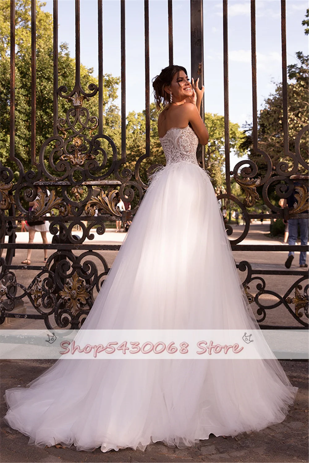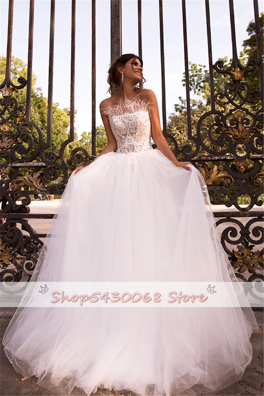 ТРАПЕЦИЕВИДНОЕ свадебное платье KapokDressy без бретелек с перьями кружевное пляжное свадебное платье со шнуровкой сзади Тюлевое свадебное платье в стиле бохо