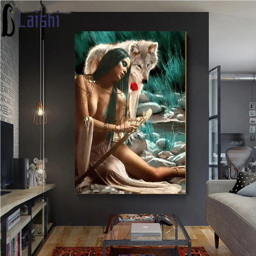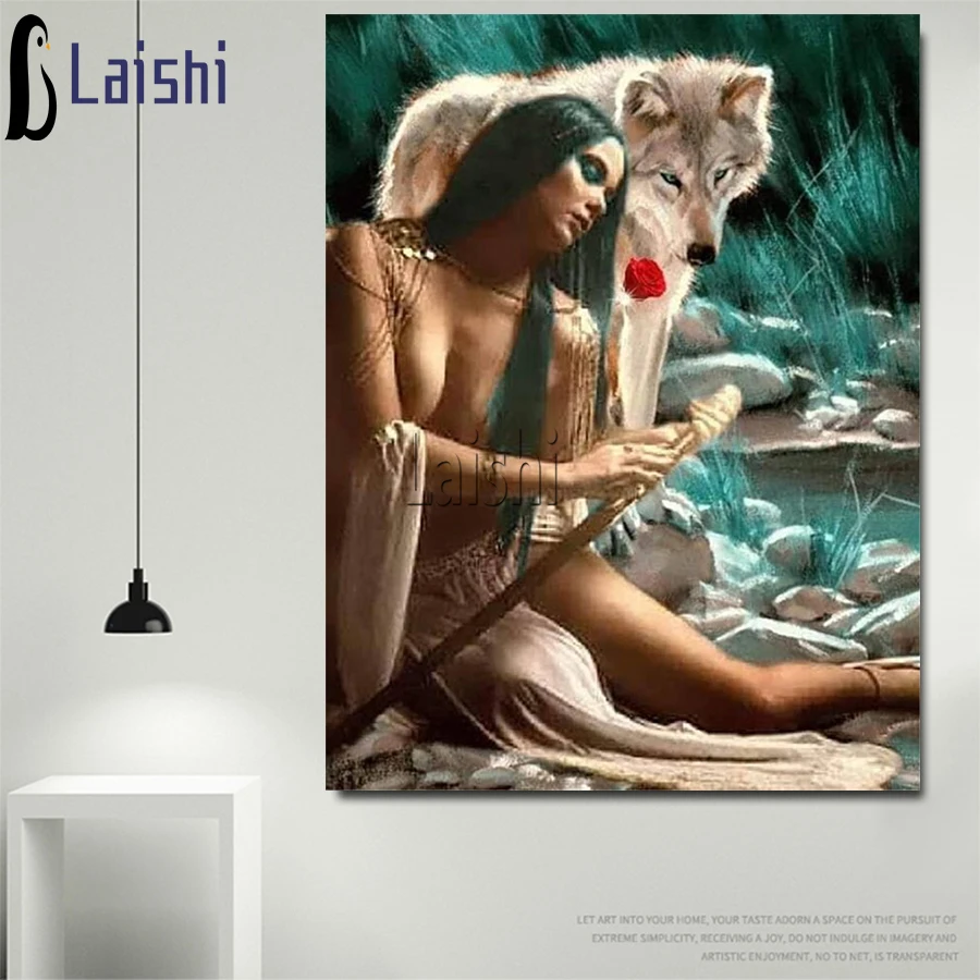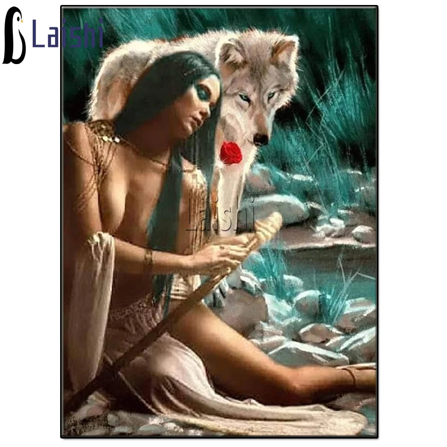 Новинка 5D алмазная вышивка индийская женщина и волк Сделай Сам полный квадратный круглый стразы Мозаичный набор ремесла подарок кулон украшение для дома