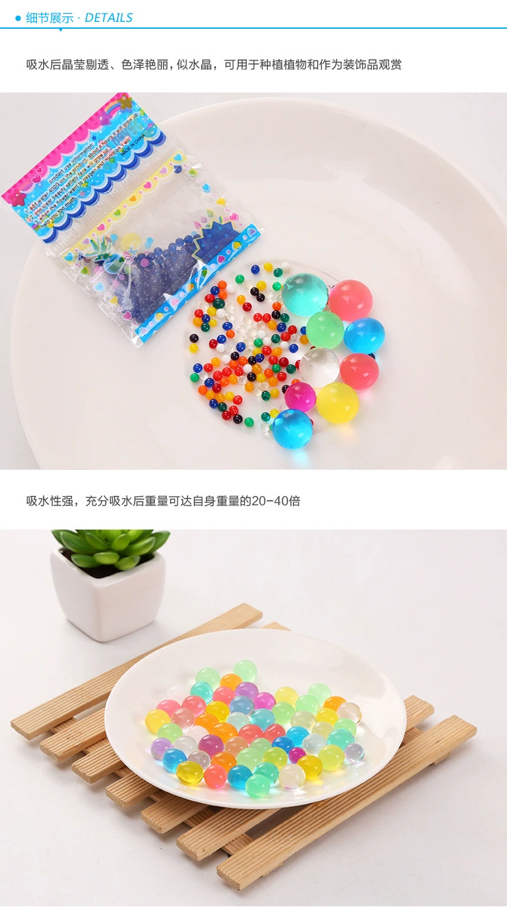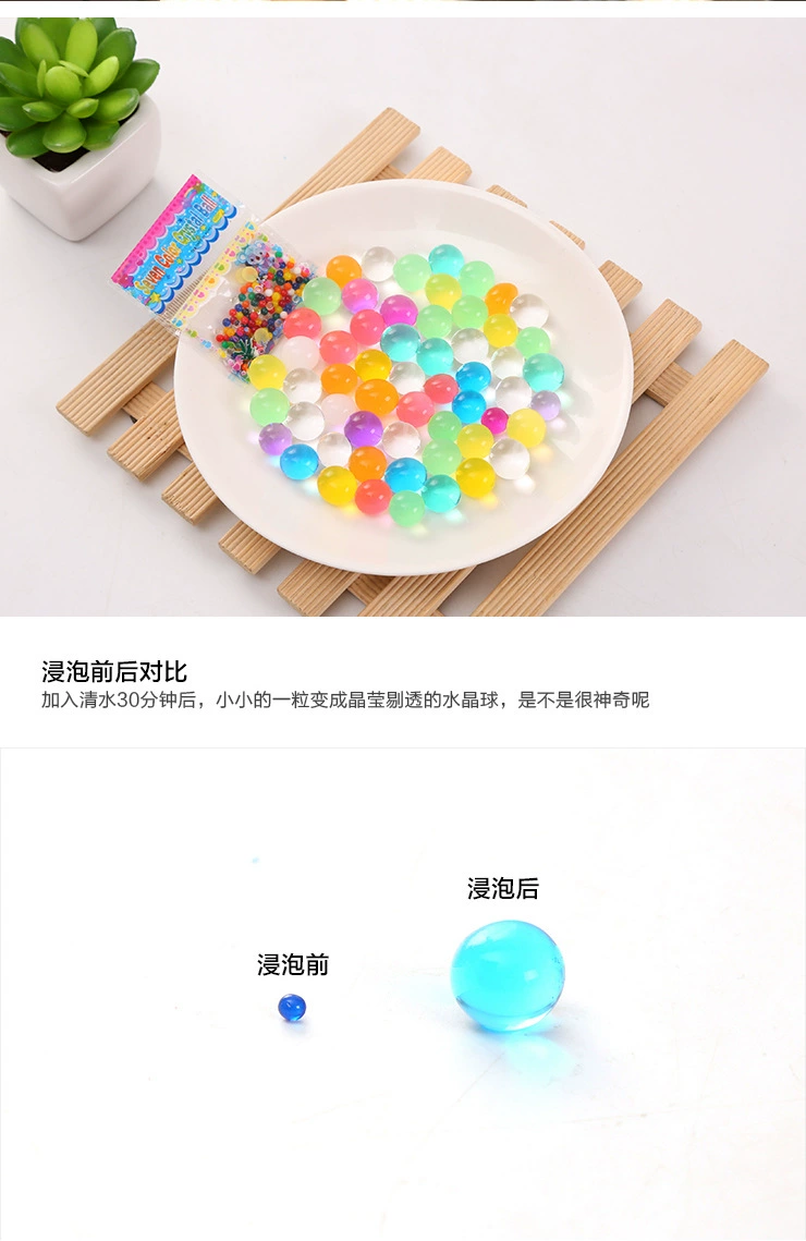 Размер:Перед впитыванием воды:2,5-3 мм,После впитывания воды:Около 10 мм-14 ммИспользование:Для украшения растений/цветов/вазы, украшения дома