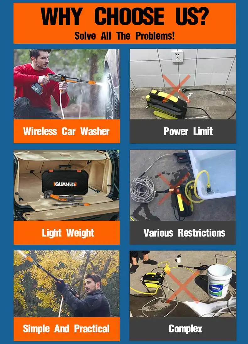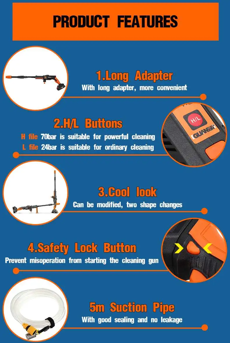 Использование продукта:[Портативная электрическая шайба] позволяет легко и быстро очистить все ваши открытые пространства и снаряжение[3X больше давления, чем шланг] обеспечивает 24BAR ~ 70BARДавление.[Извлеките воду из любого места] прикрепляется к типичному садовому шлангу или извлекает воду из любого источника пресной воды, такого как бассейн, озеро или ведро[2-скорости] Go HI или короче спереди и длиннее сзади): Привет, когда ваш автомобиль или колода действительно грязный подол короче спереди и длиннее сзади) для Зажигалка для уборки, чтобы экономить воду и батарея[Сопло давления] 5 в 1 Распылительная насадка позволяет переключаться между различными градусами интенсивности потока воды, так что вы можете переключаться от очистки к поливу.