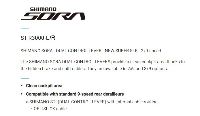 Рычаг переключения передачтормоза SORA, ST-R3000-LR, 2x9 скоростей