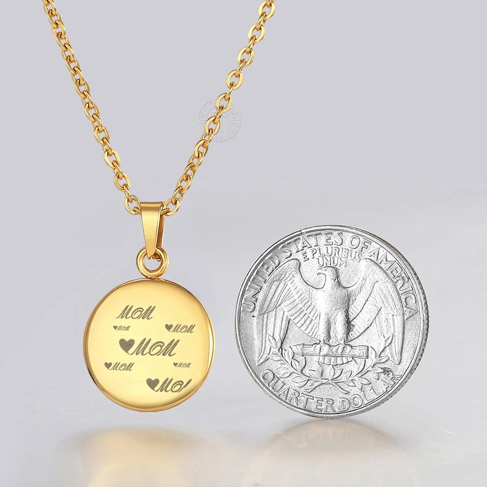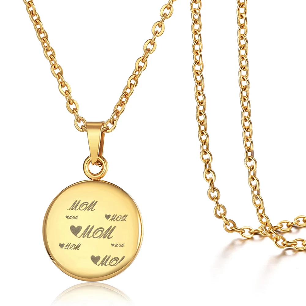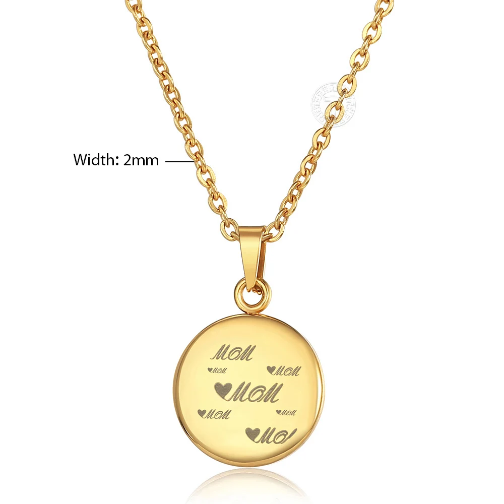 2 мм ожерелье кулон для мужчин и женщин из нержавеющей стали маленький медальон диск Кулон Любовь Мама гравировка очарование День матери подарок DKP665