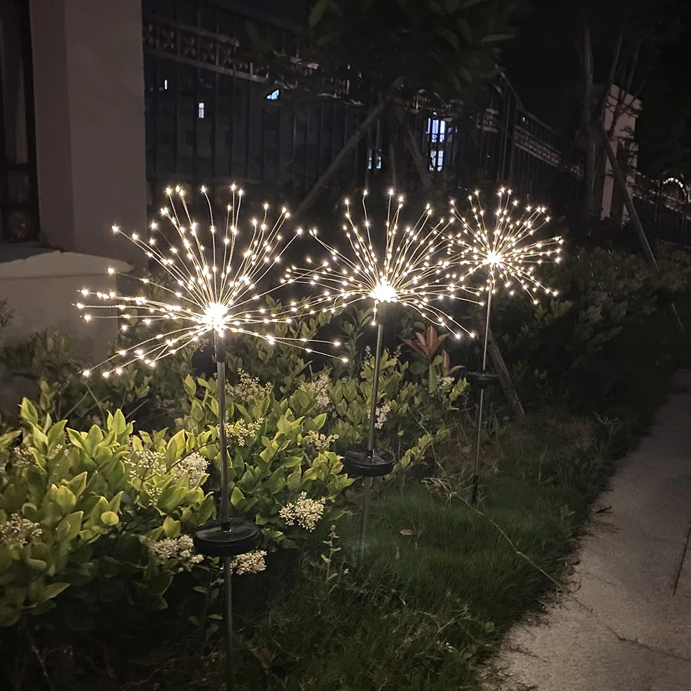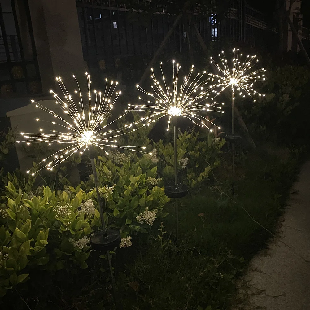 Гирлянда с солнечной батареей и фейерверками, уличный садовый фонарь в виде одуванчика, водонепроницаемая лампа-лента, 90120150 светодиодов
